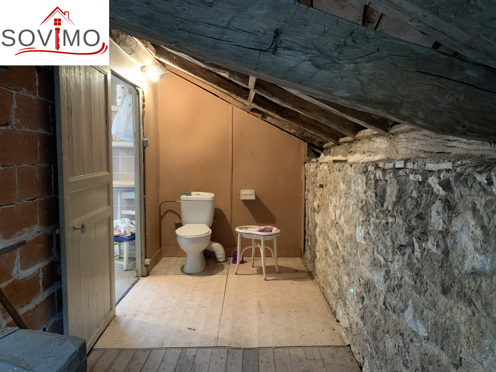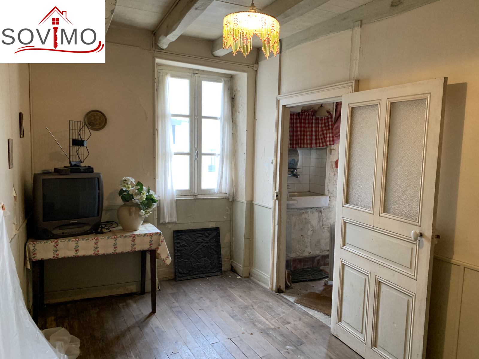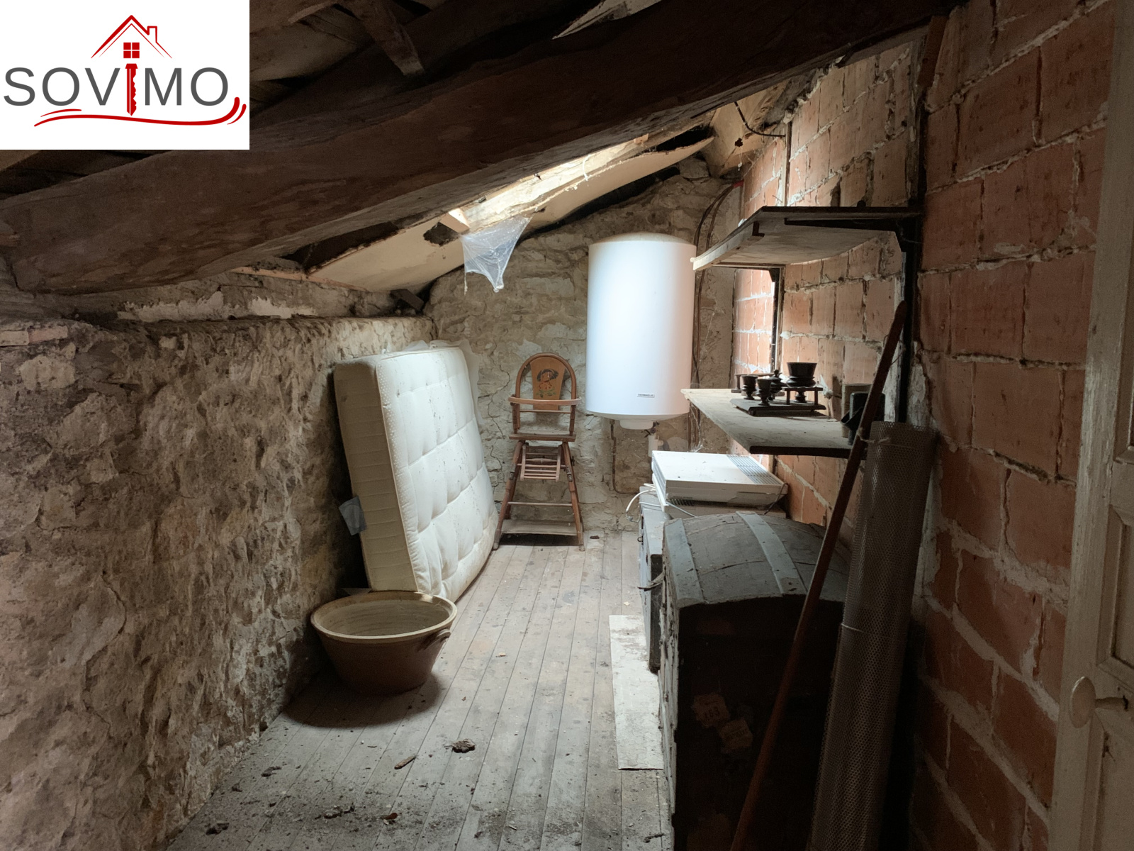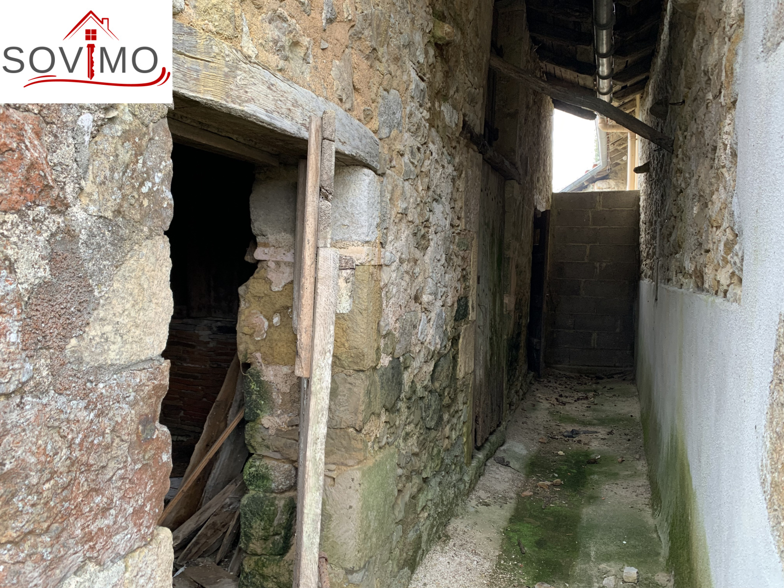 REF. 34344 : 33 000 euros H.A.I, Ambernac (16), secteur Confolens, maison de village mitoyenne, à rénover, 67 m2 env. utilisables : cuisine (cheminée), salon, cave/cellier de 16 m2, à l'étage : palier, 2 chambres (poele à bois), salle de bain, wc dans remise de 6 m2,tout à l'égout, petits toits avec grenier, sans jardin.