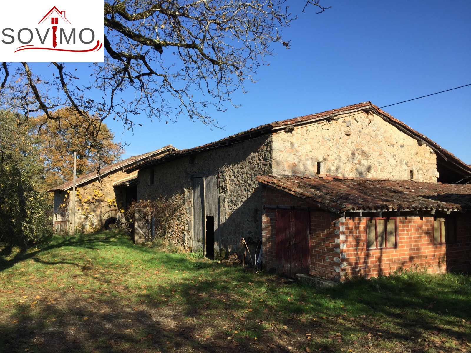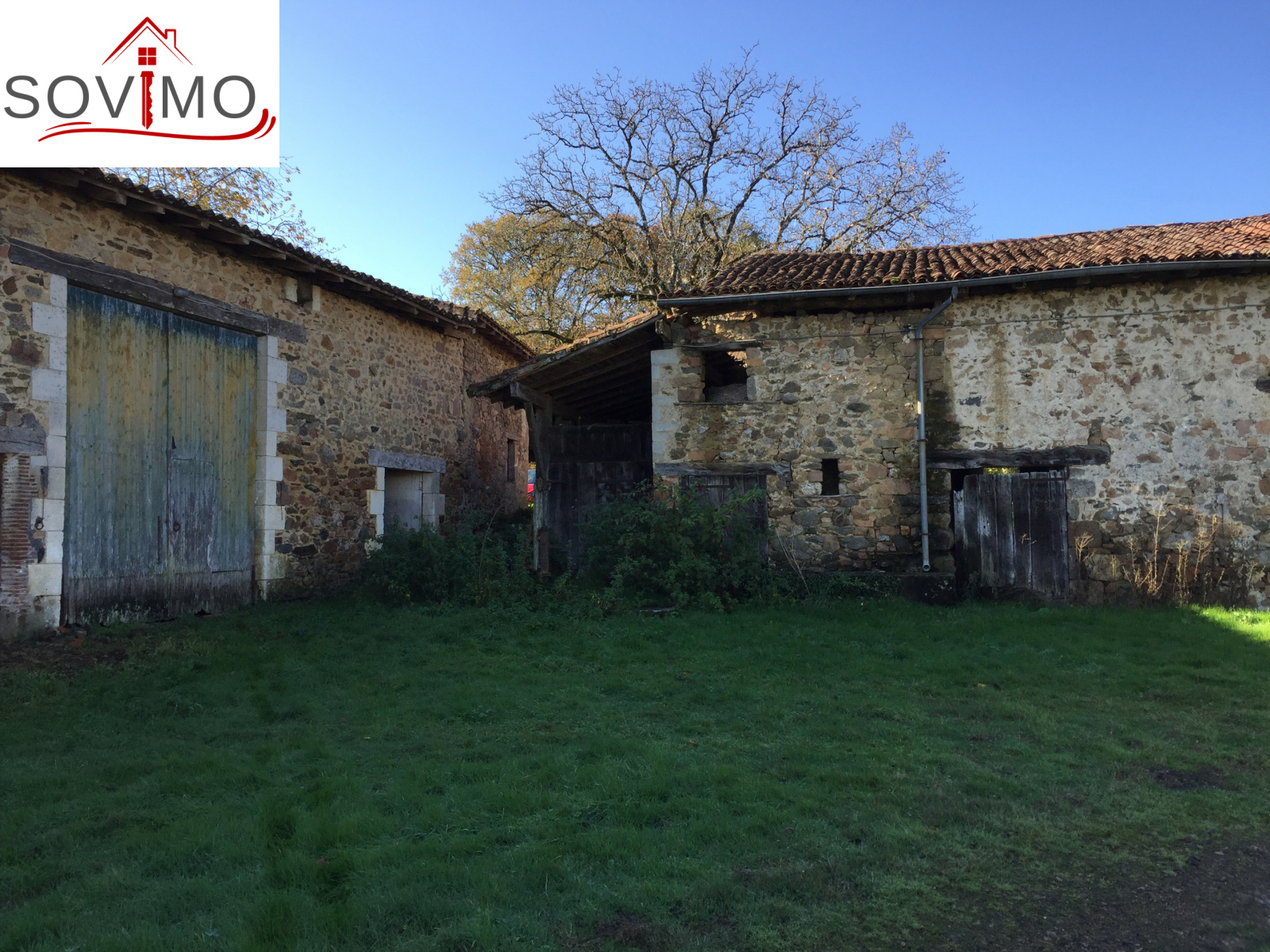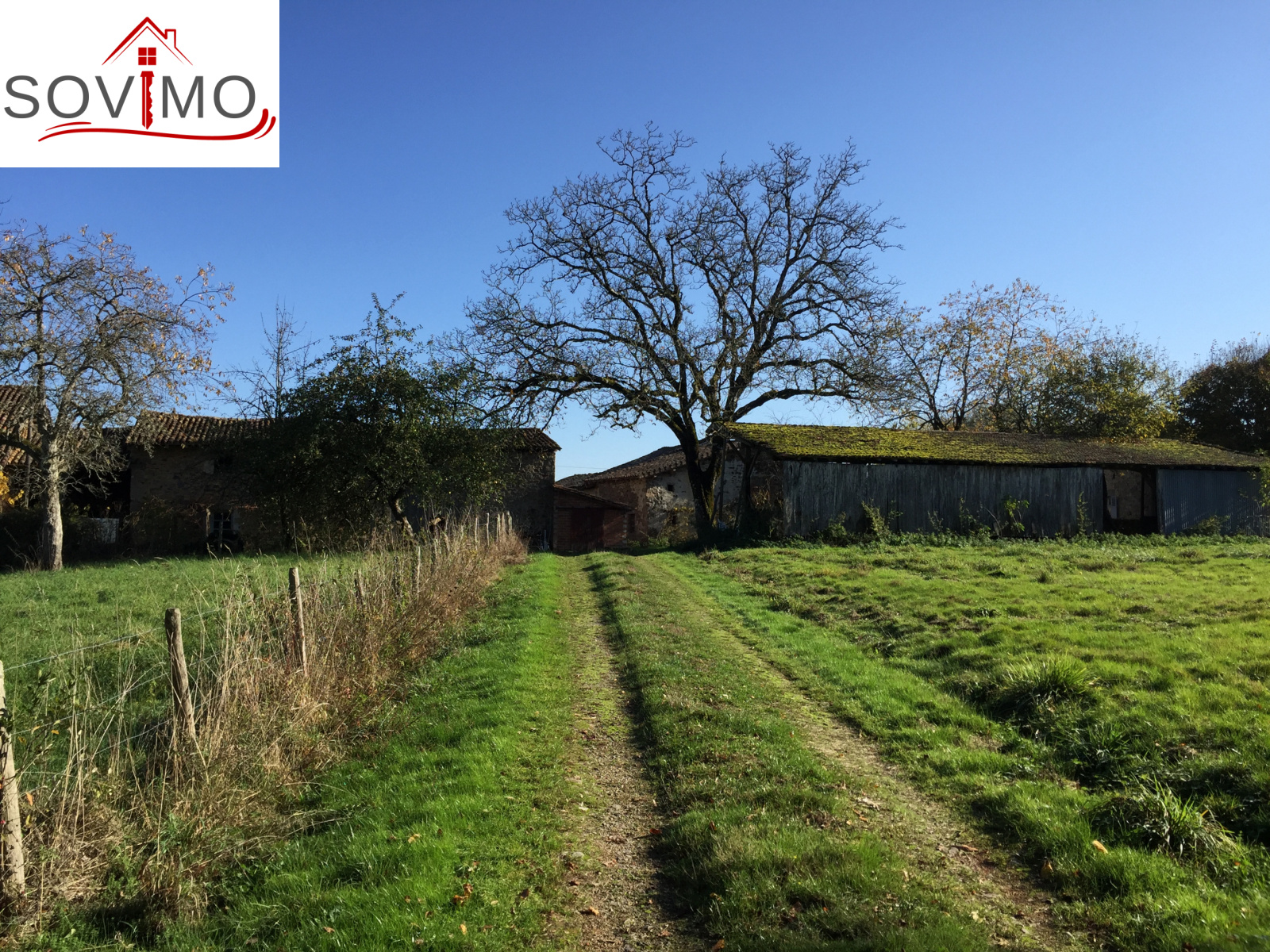 REF.33984 : 55 000 euros H.Ag.Incl., LESTERPS (16), à 9.4 km de Confolens, dans un hameau, ensemble immobilier à rénover sur 2ha env., maison de campagne indépendante, sans confort, 105 m2 env. utilisables : entrée/couloir, cuisine (cheminée + cuisinière bois), séjour, 1 chambre, à l'étage : palier, 2 chambres, grenier aménageable, grange mitoyenne avec étable de 90 m2, chai avec grenier, hangar ouvert indépendant, + autre ancienne maison, 41 m2 env. : 2 pièces, grenier aménageable de 46 m2, auvent de 50 m2, grange avec étable de 110 m2+ autre grange de 100 m2, garage, puits avec moto pompe, terrain attenant.