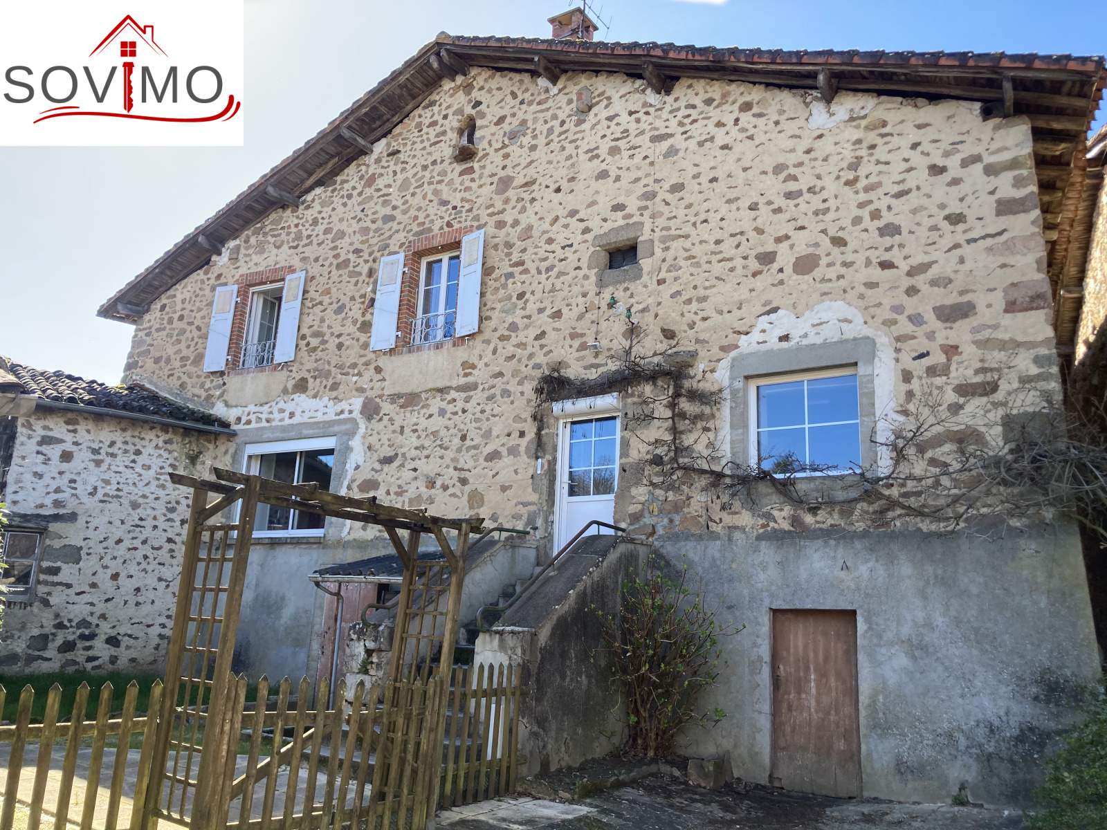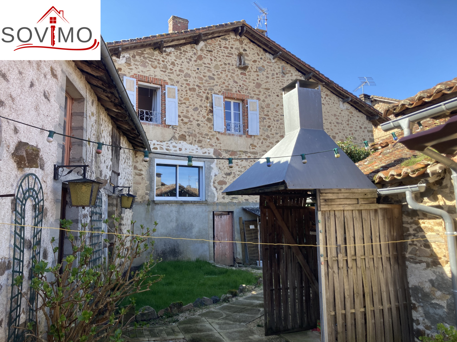RÉF.34601 : 104 500 euros H.A.I, Lesterps (16), dans un village médiéval avec les premiers commerces, du potentiel pour cette maison d'habitation en pierre sur 2 niveaux, à usage de commerce et d'habitation, 200 m2 env. utilisables, (ancien restaurant), composée au rez de chaussée : entrée/couloir, buanderie, cuisine, salon/séjour, 1 chambre, cabinet de toilette, à l'étage : cuisine/séjour, 2 dégagements, 3 chambres, salle de bain, salle d'eau/wc, wc, grenier au dessus, chauf. fuel, tout à l 'égout. Four à pain, garage de 26 m2, 3 caves, remise de 25 m2 avec grenier, Bar extérieur avec terrasse + ancienne maison à rénover de 46 m2 env. composée de 4 pièces, Cour intérieure, le tout sur 452 m2.