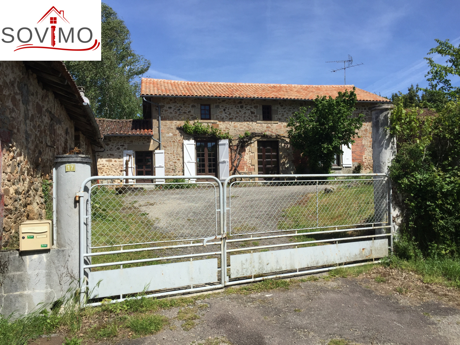 REF.34041 : 118 800 euros H.A.I, LESTERPS (16), Dans un joli bourg à 9 kms de Confolens, ancienne charmante maison de campagne en pierre, indépendante, à usage d'habitation, 105 m2 env. utilisables : entrée/couloir, véranda, cuisine aménagée, 2 chambres, salle de bain/wc, wc, chauf. fuel, grenier aménageable de 85 m2,tout à l'égout, grange attenante avec étables de 350 m2 et chaufferie de 10 m2, bâtiment indépendant avec four à pain à rénover, cellier de 38 m2 avec grenier et appentis de 30 m2, cour et terrain attenants avec puits, le tout sur 2990 m2.