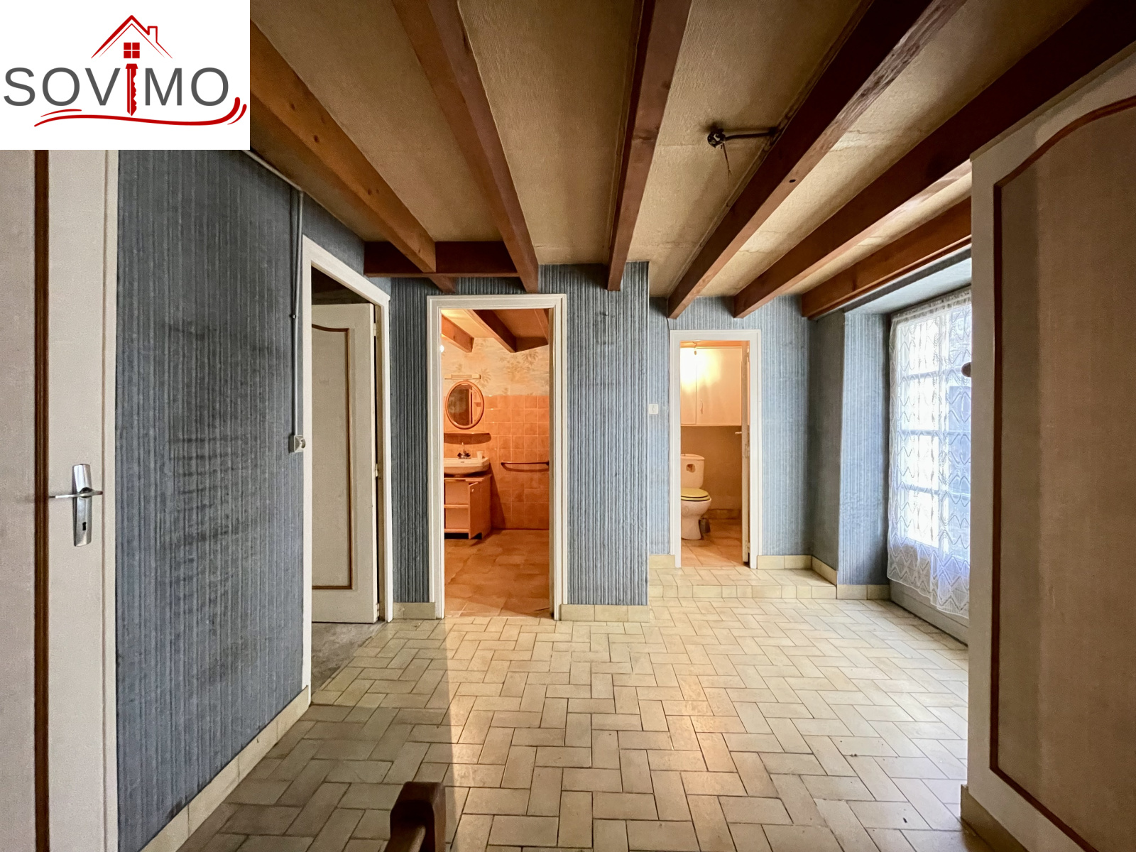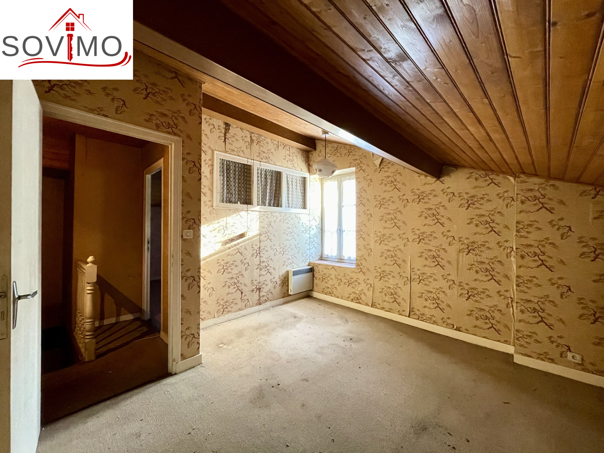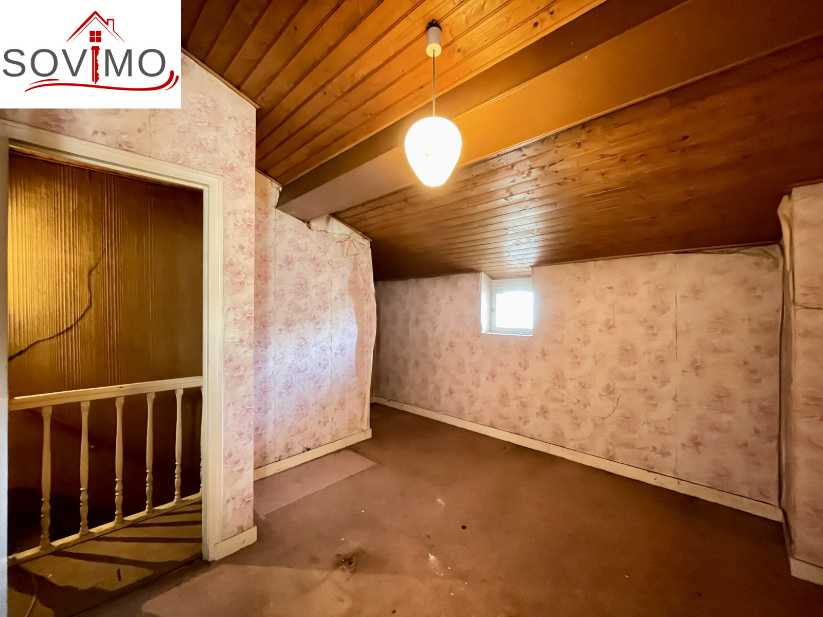- 1er étage : palier, 1 chambre, grenier aménageable mansardé de 30 m2 offrant des possibilités d'extension