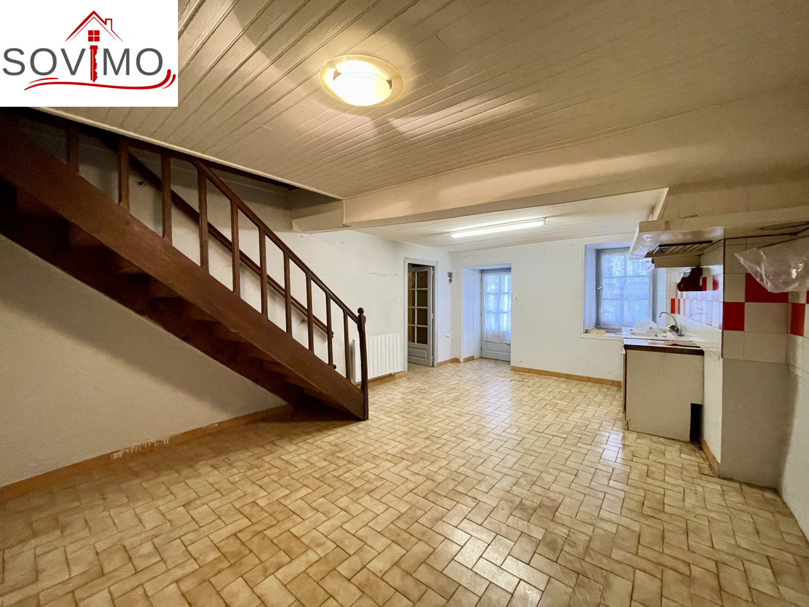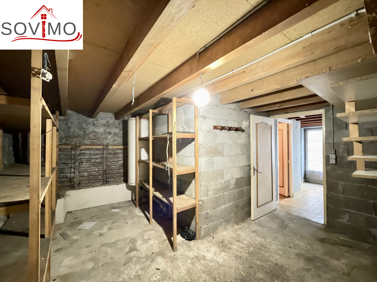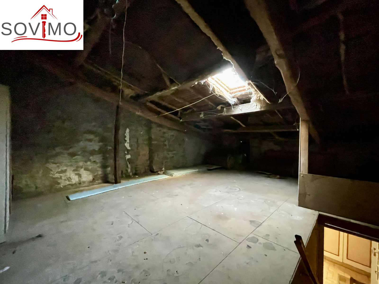 - Au rez de chaussée : cuisine/séjour, dégagement, wc, salle d'eau, cellier/cave de 14 m2.