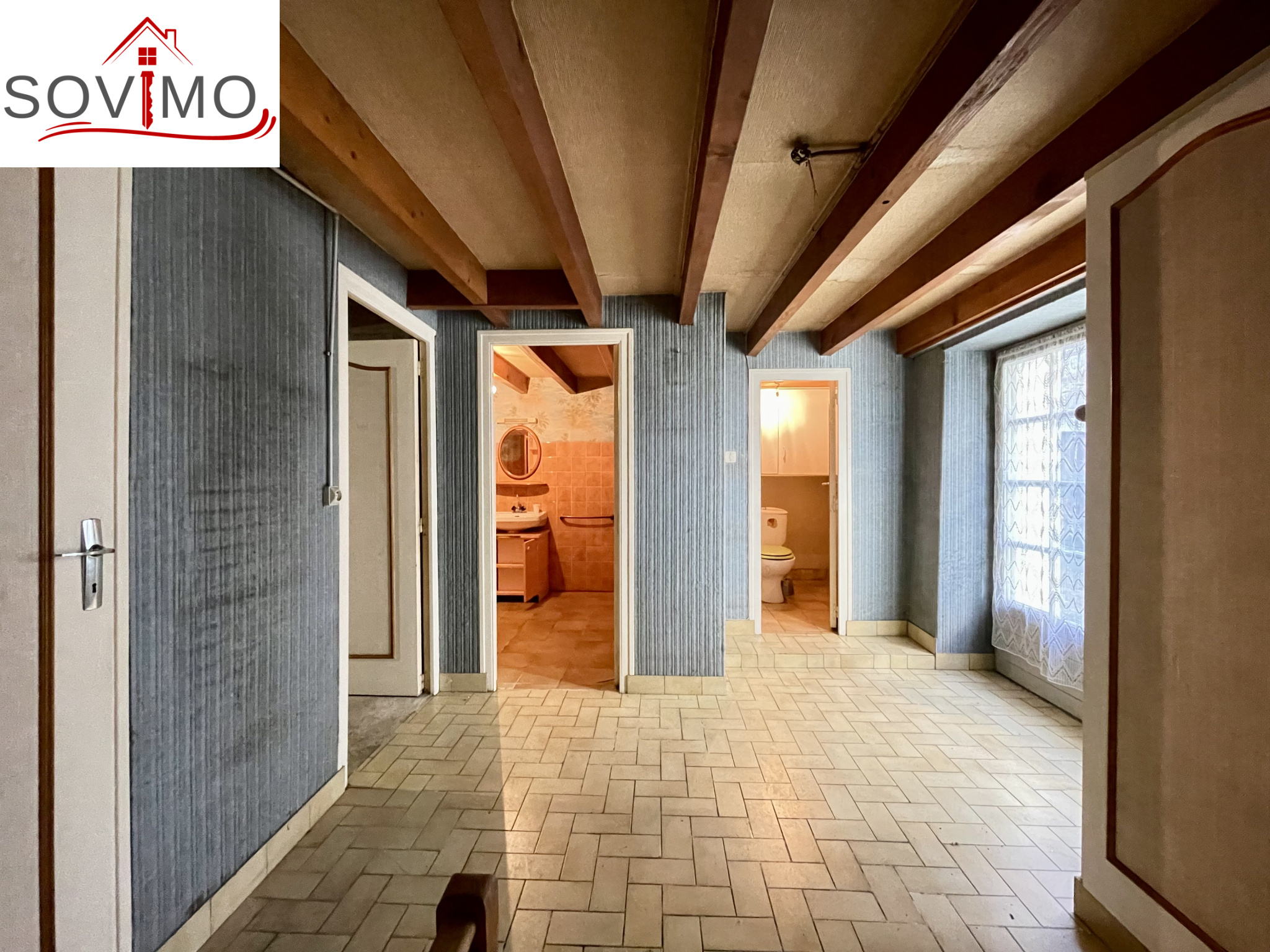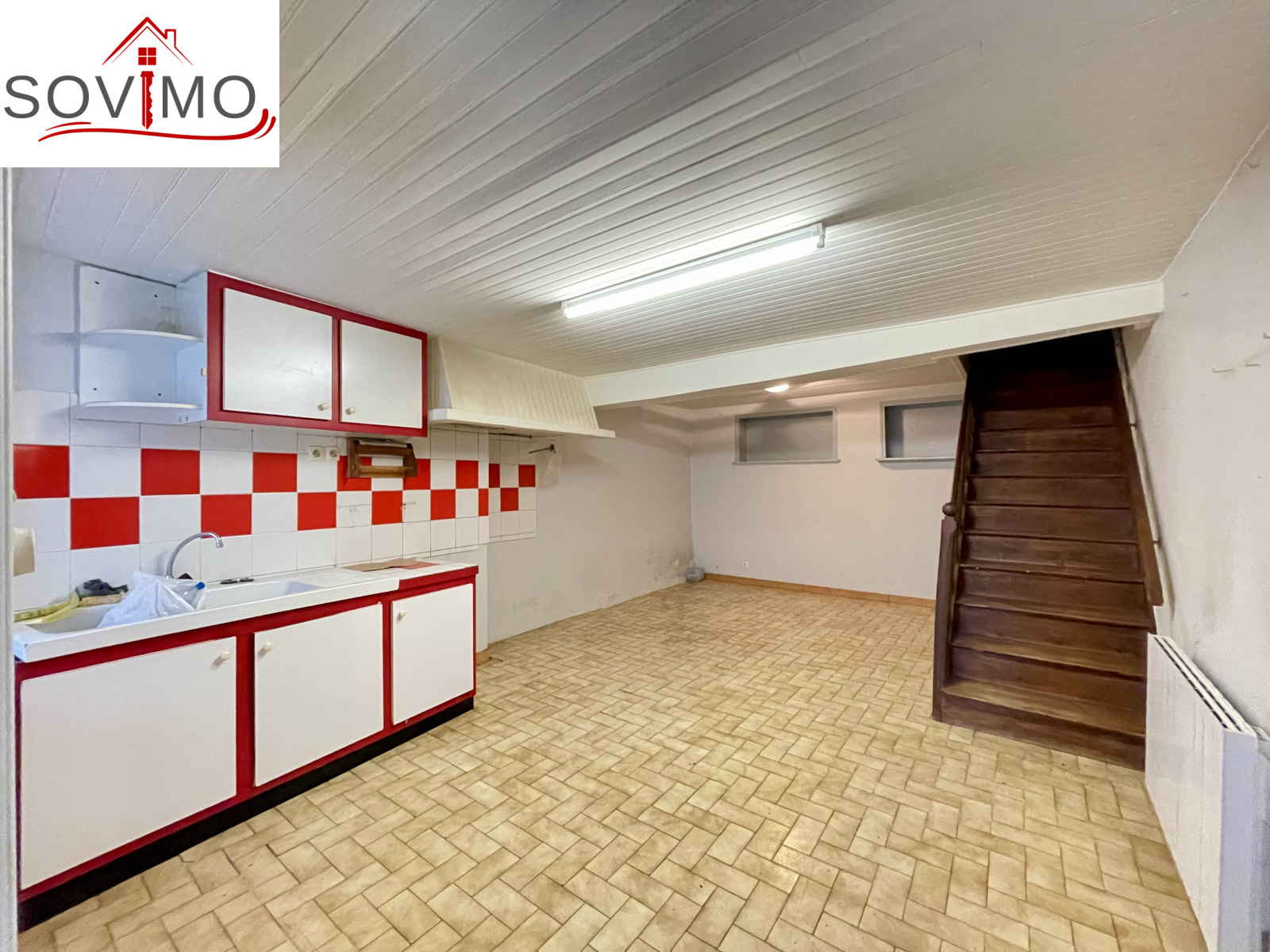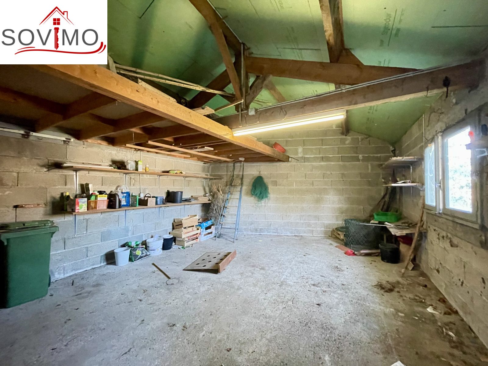- Au rez de chaussée : cuisine/séjour, dégagement, wc, salle d'eau, cellier/cave de 14 m2.