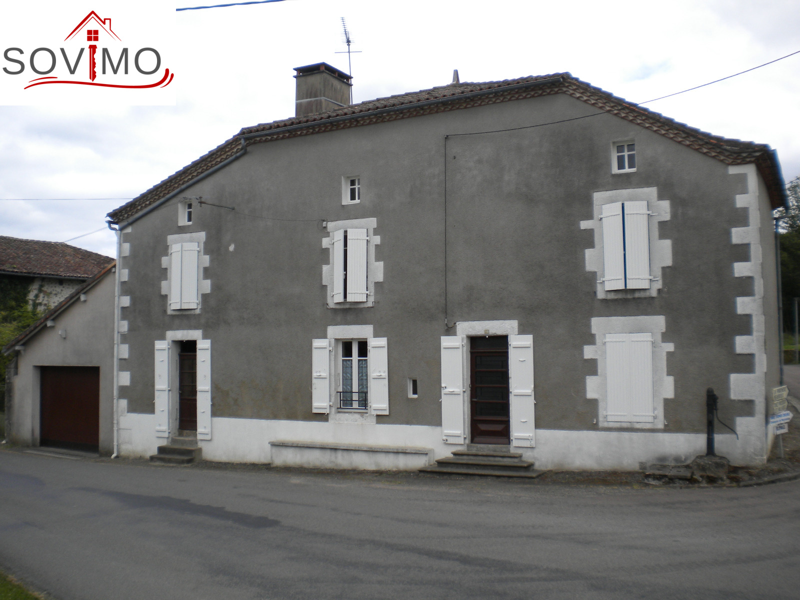 Réf. 33682 : 66 000 euros H.Ag. incl., Lesterps (16), maison de village tout confort, 140 m² env. utilisables : entrée, cuisine/séjour, arr.cuisine avec wc, salon, 1 chambre, wc, étage : palier, 3 chambres, salle d'eau/wc, chauffage électrique, grenier aménageable 60 m2, cellier 25 m2 avec grenier, garage 30 m2, cour intérieure, jardin en face, tout à l'égout, le tout sur 895 m² env.