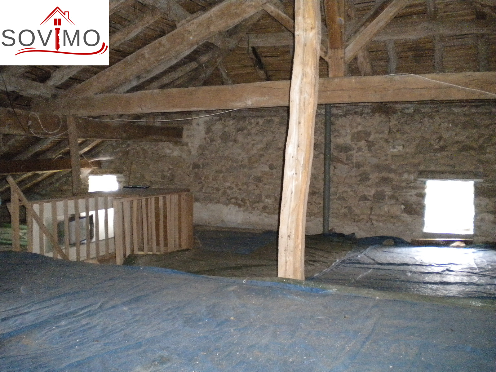 Grenier aménageable 60 m2, cellier 25 m2 avec grenier au dessus, bûchet, garage 30 m2.