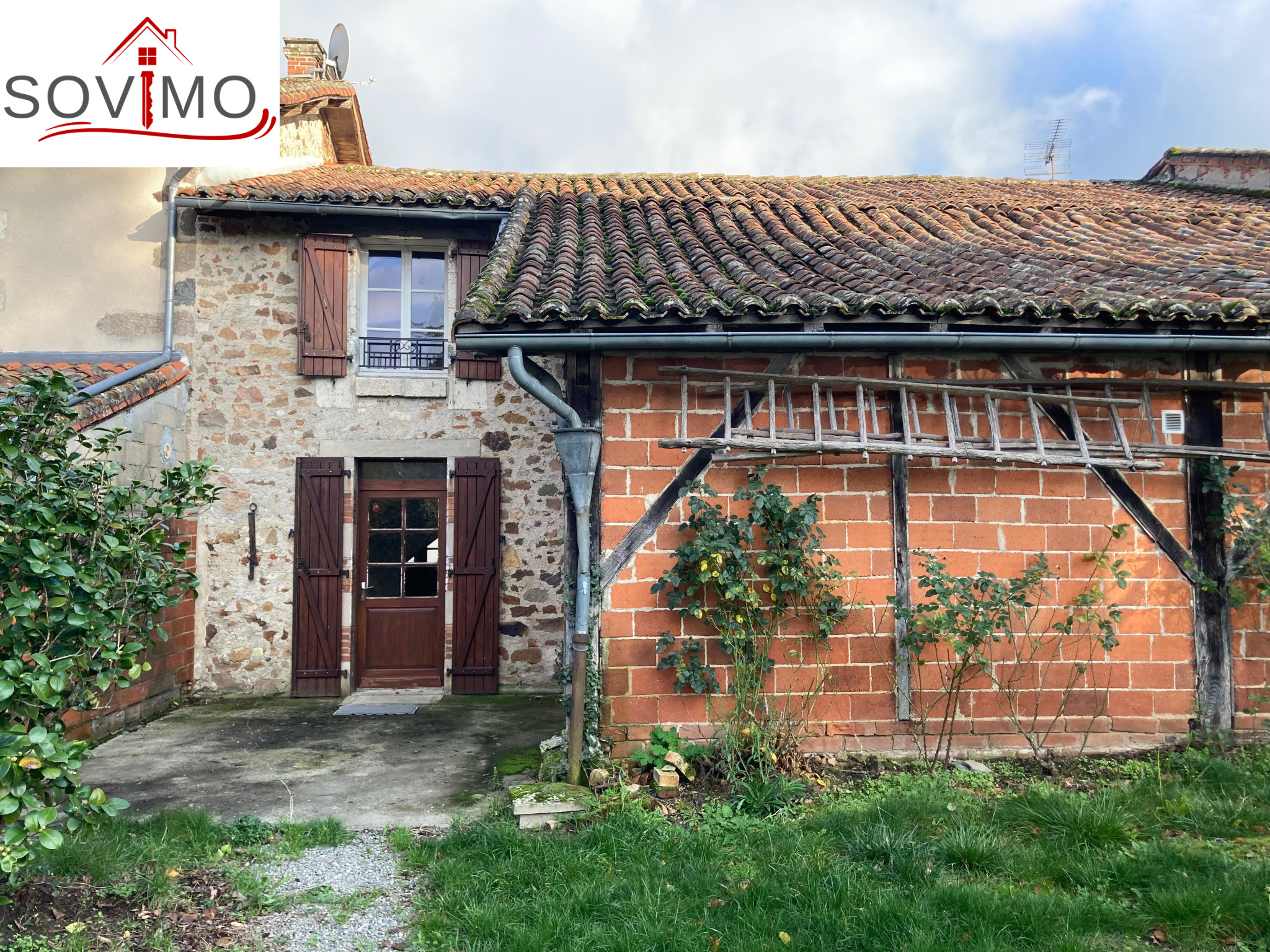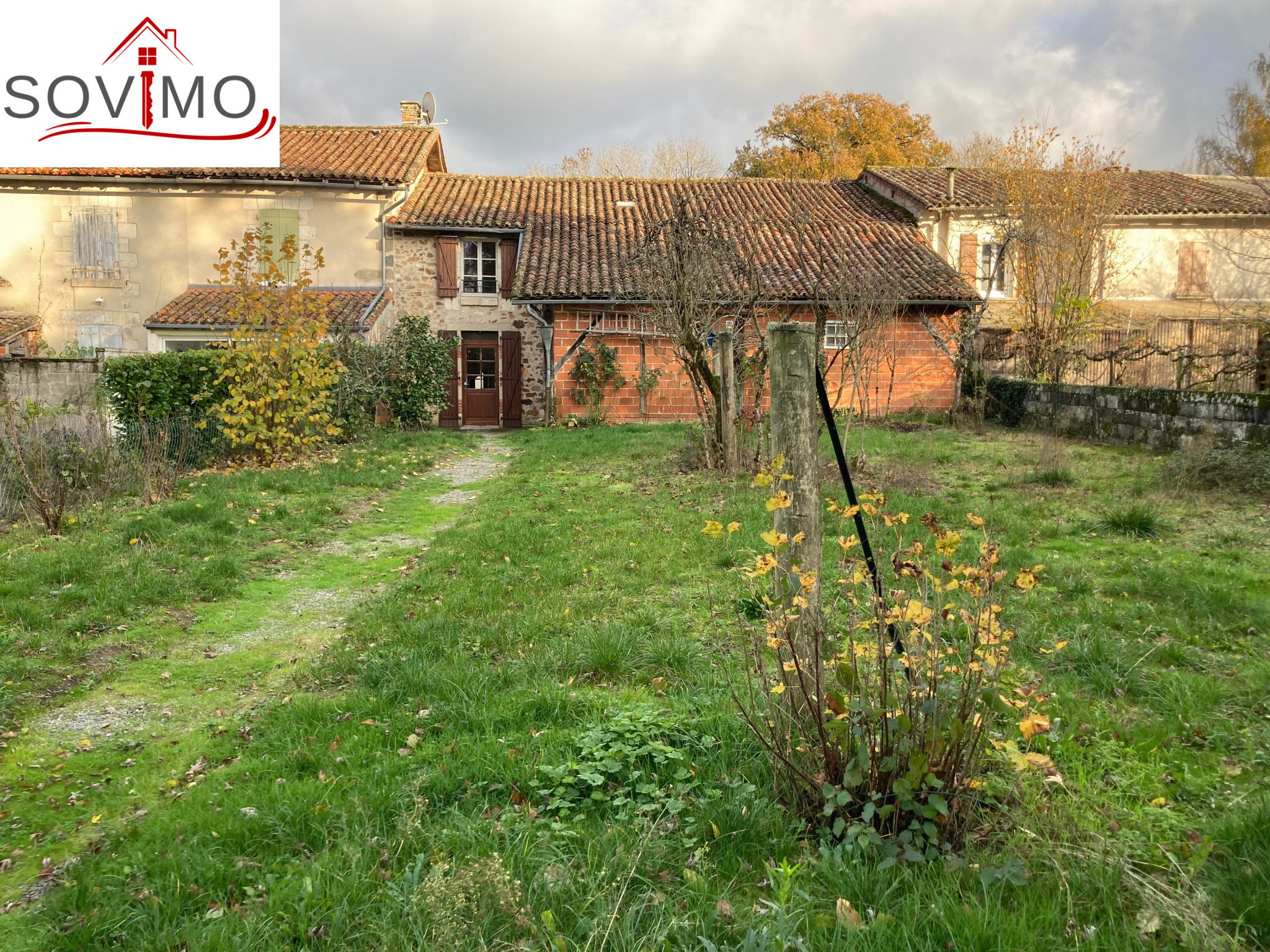 REF.34561 : 66 000 euros H.A.I, Lesterps (16), 9 kms de Confolens, maison de village mitoyenne, à usage d'habitation, 105 m2 env. utilisables : cuisine amé. équipée, buanderie, salon/salle à manger (poele à bois), bureau, cabinet de toilette, étage : palier, 3 chambres, salle de bain/wc, chauf. électrique, cellier de 16 m2, tout à l'égout, jardin attenant de 410 m2, parcelle séparée de 955 m2, le tout sur 1365 m2.