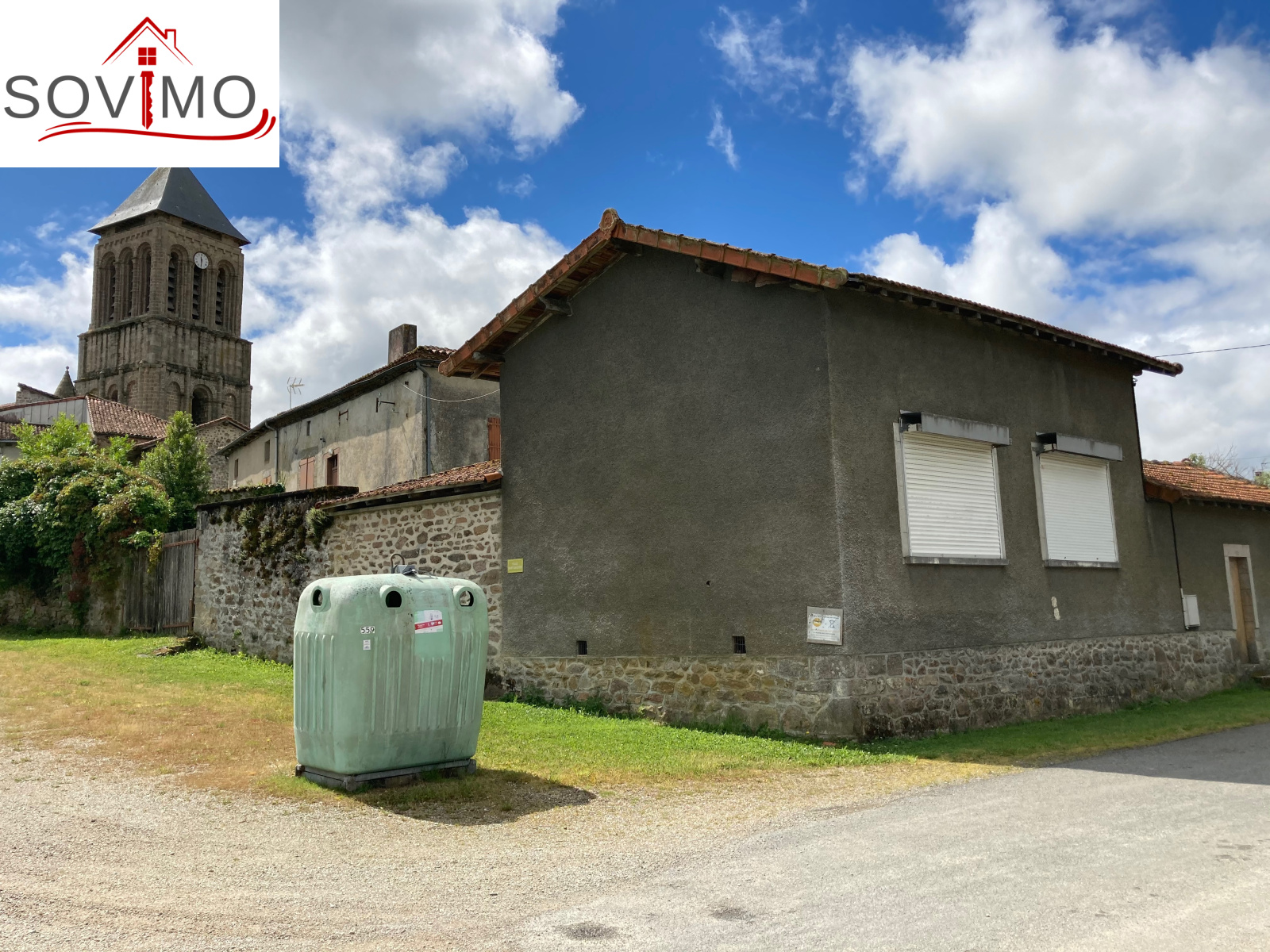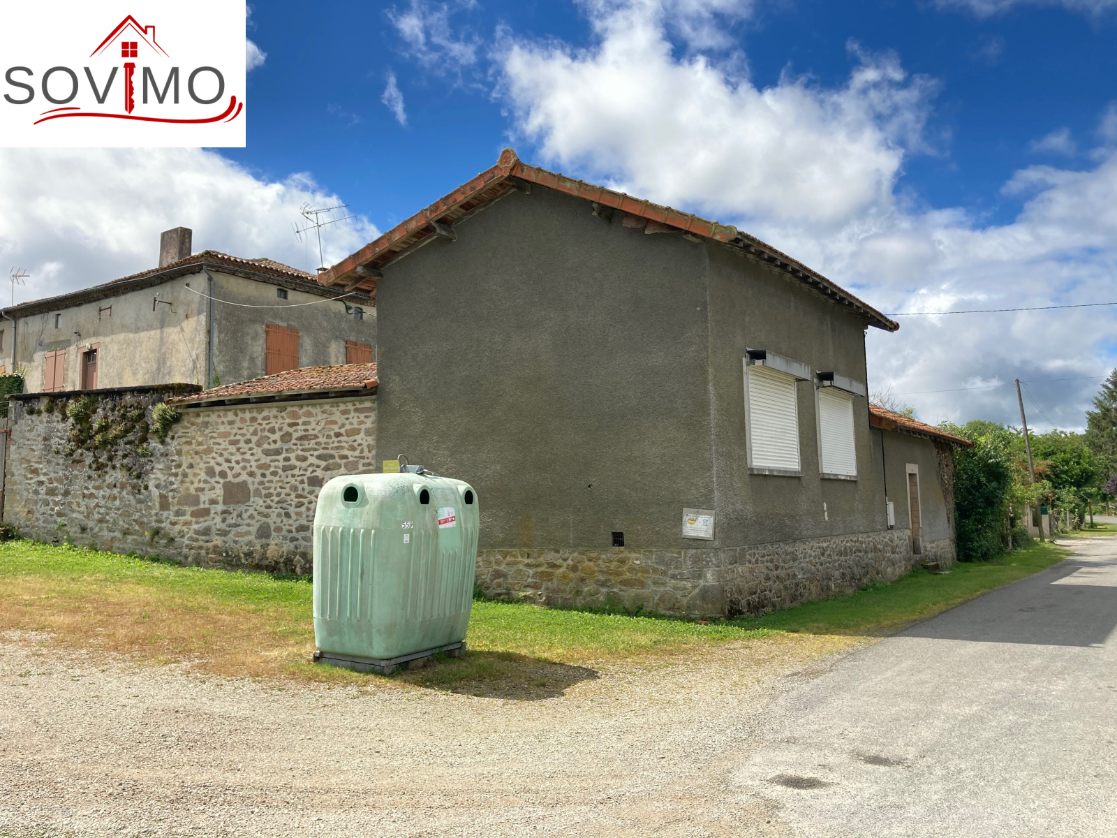 INFORMATIONS COMPLEMENTAIRES : chauffage électrique, cheminée, cumulus électrique de 200 L dans maison 1 et chauffe eau gaz maison 2, simple vitrage et volets bois et volets roulants manuels, construction pierre, toiture tuile état d'usage, tout à l'égout.