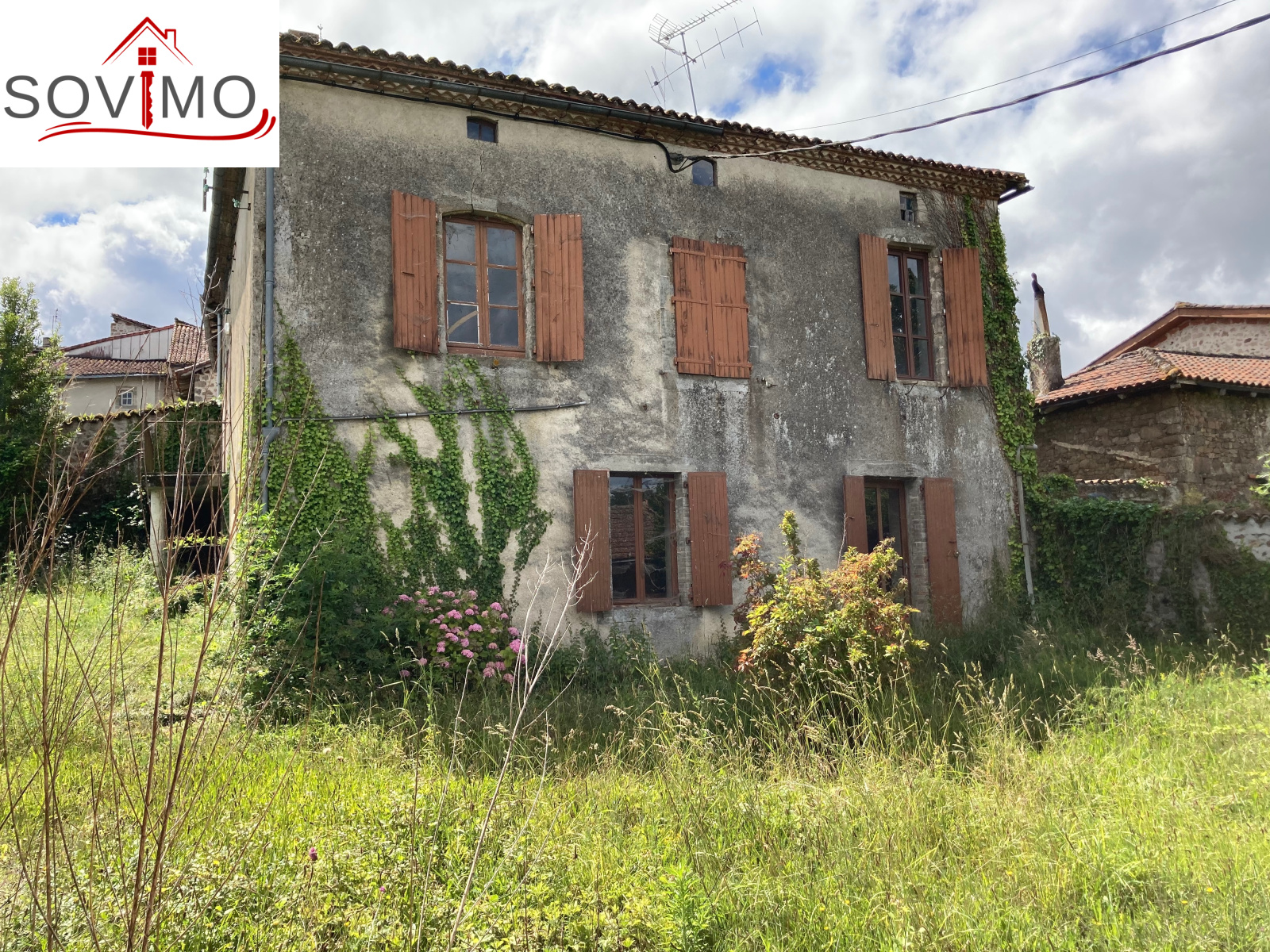 REF. 34146 : 55 000 euros H.A.I, Lesterps (16), dans un joli village, ensemble immobilier avec 2 maisons à rénover, à usage d'habitation, maison 1) 166 m2 env utilisables : cuisine/séjour (cheminée), 1 pièce, dégagement, wc, cave, à l'étage : entrée, 5 chambres, dégagement, salle d'eau/wc, grenier au dessus, maison 2) 49 m2 env; utilisables : entrée, cuisine, 2 chambres, salle d'eau/wc, préau de 40 m2. Chauf. électrique, tout à l'égout, jardin attenant clos, le tout sur 506 m2.