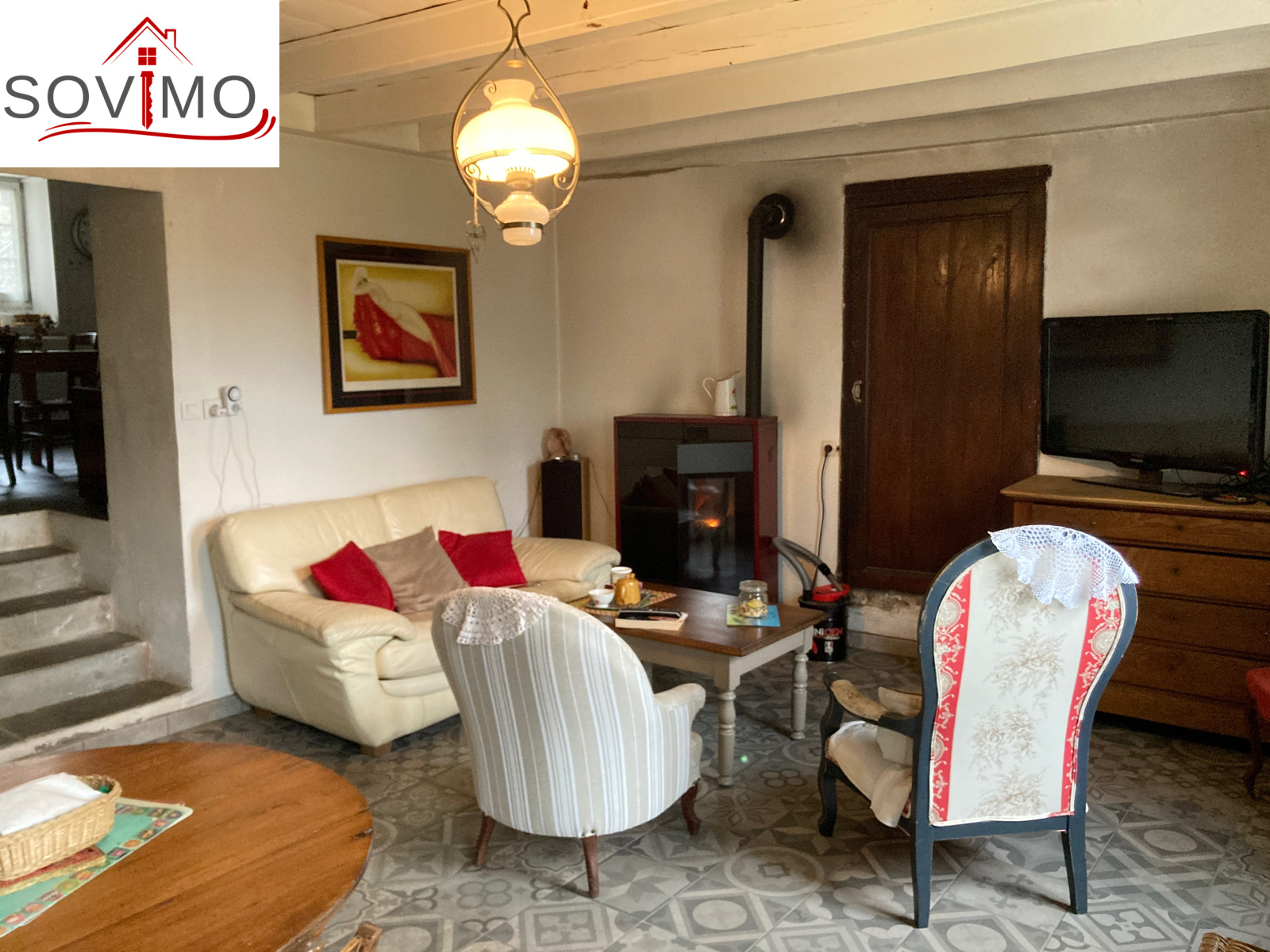 INFORMATIONS COMPLEMENTAIRES : chauffage électrique poele à granulés, cumulus électrique de 200 L, double vitrage et volets bois, construction pierre, toiture tuile état d'usage, tout à l'égout, bon état général.