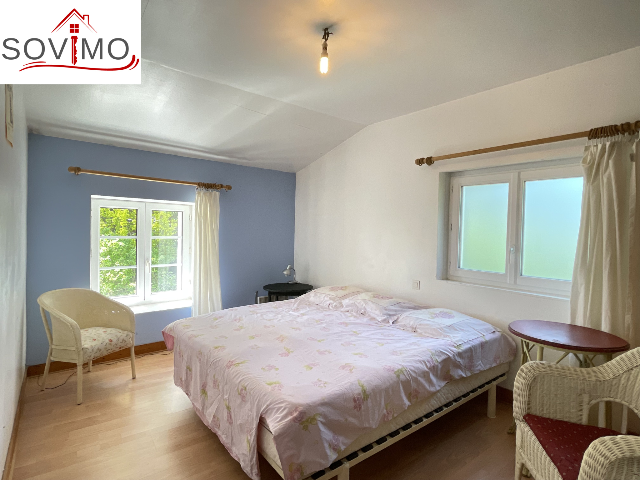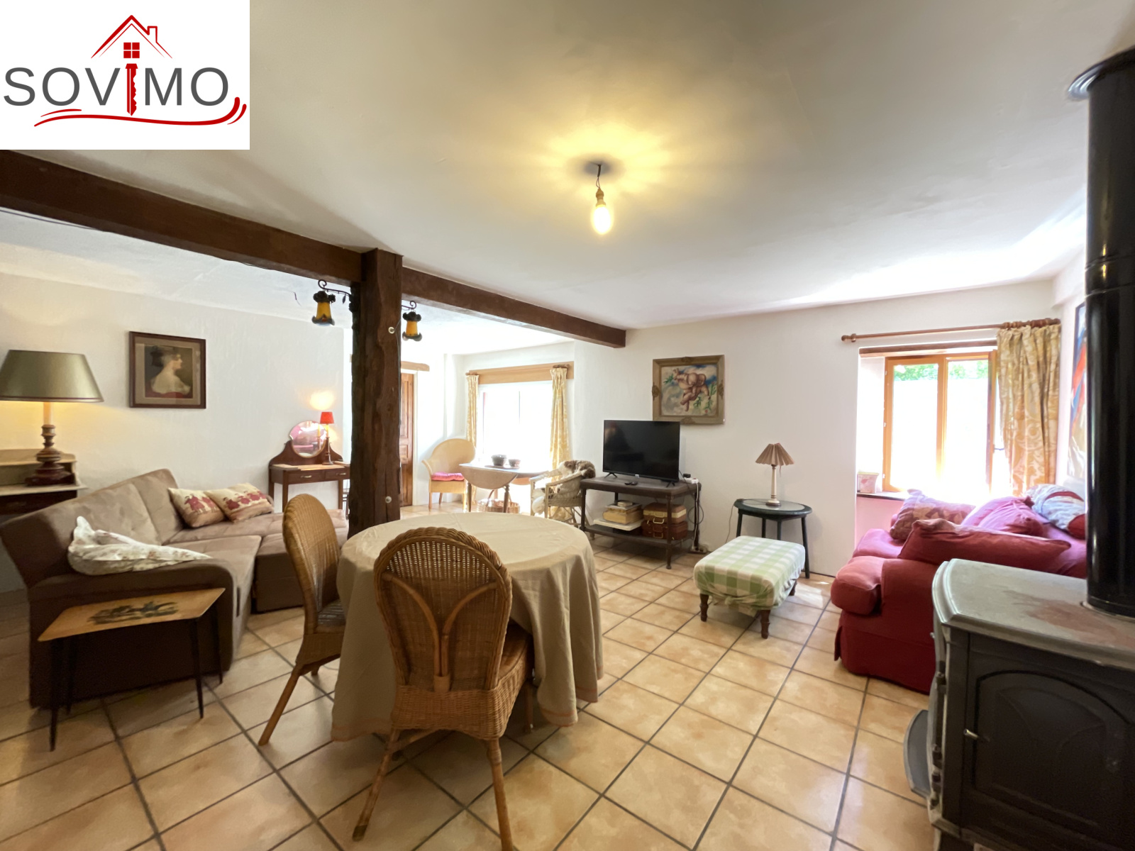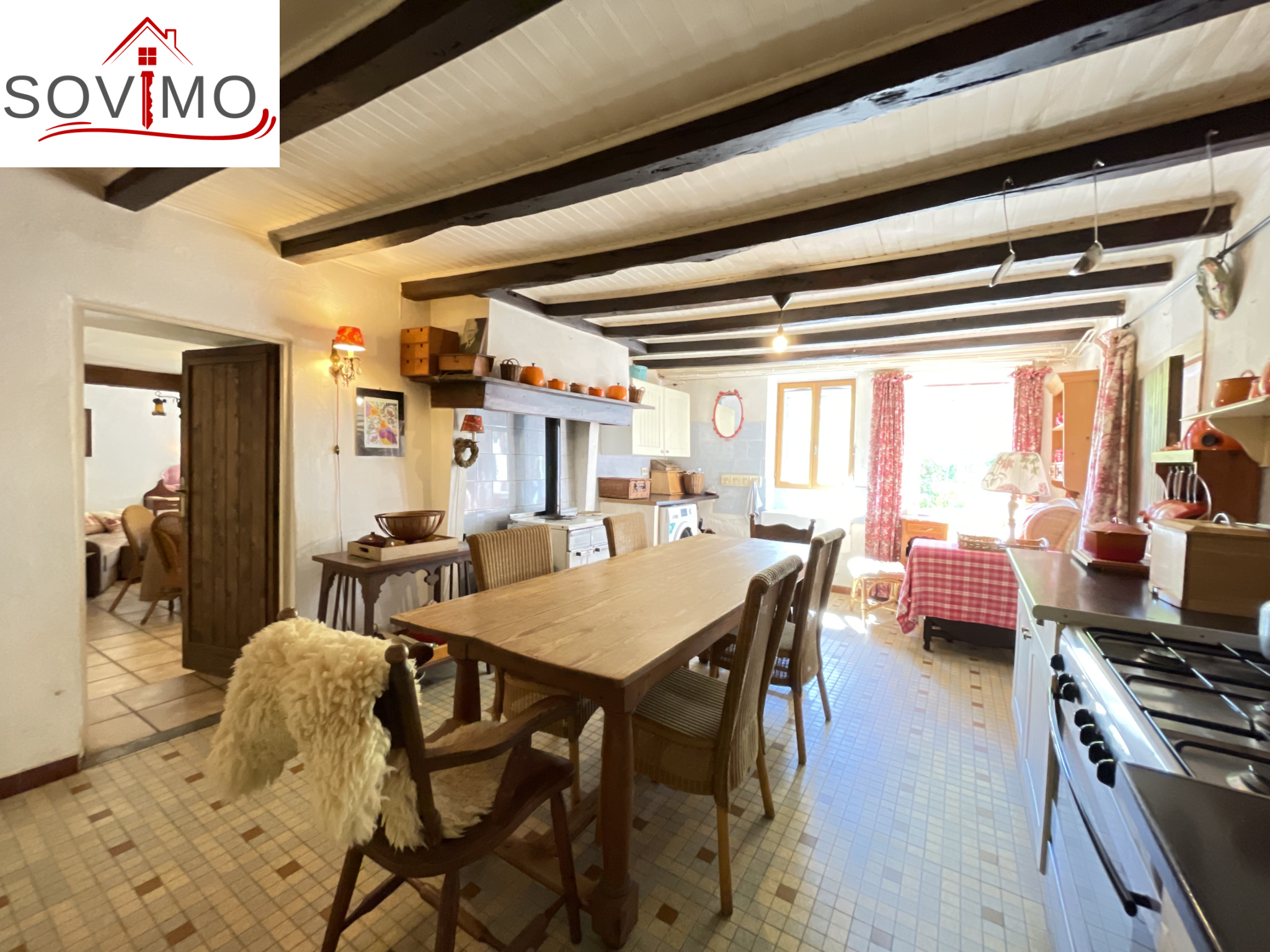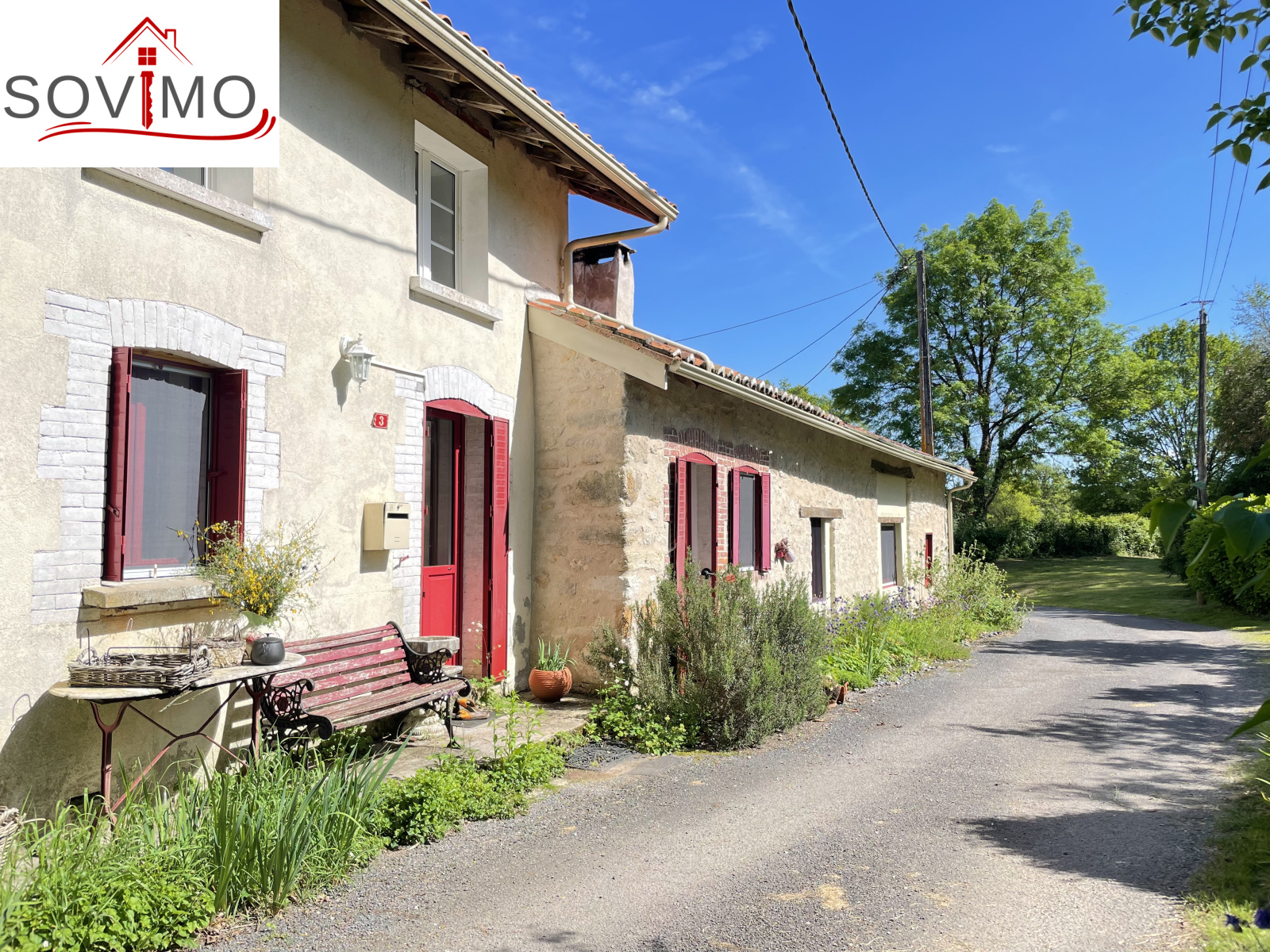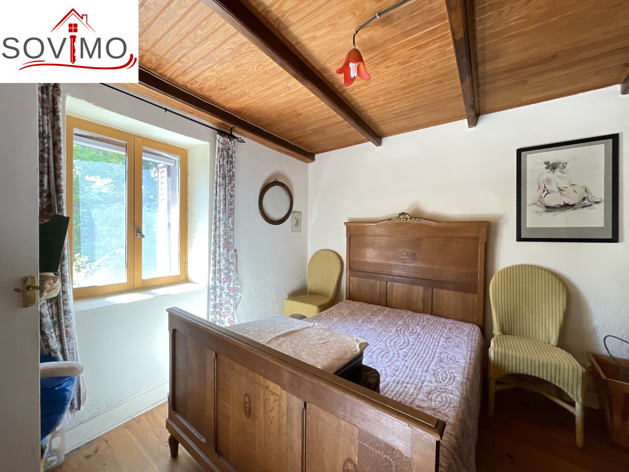REF. 34614 : 93 500 euros HAI, Manot (16), 9kms de Confolens ville avec tous commerces, dans un hameau, maison de campagne mitoyenne, tout confort, à usage d'habitation, 145 m2 env. utilisables, composée au rez de chaussée : entrée, cuisine aménagée/séjour (cheminée avec cuisinière bois), salon (poêle à bois), dégagements, 2 chambres dont 1 avec salle d'eau/wc, à l'étage : palier, 2 chambres, chauf. électrique, fosse toutes eaux., 16 panneaux solaires. En face séparé : un hangar de 55 m2 + petite mare, puits, diverses parcelles de terre, prés, landes et taillis, le tout sur 1ha 90a 62ca.