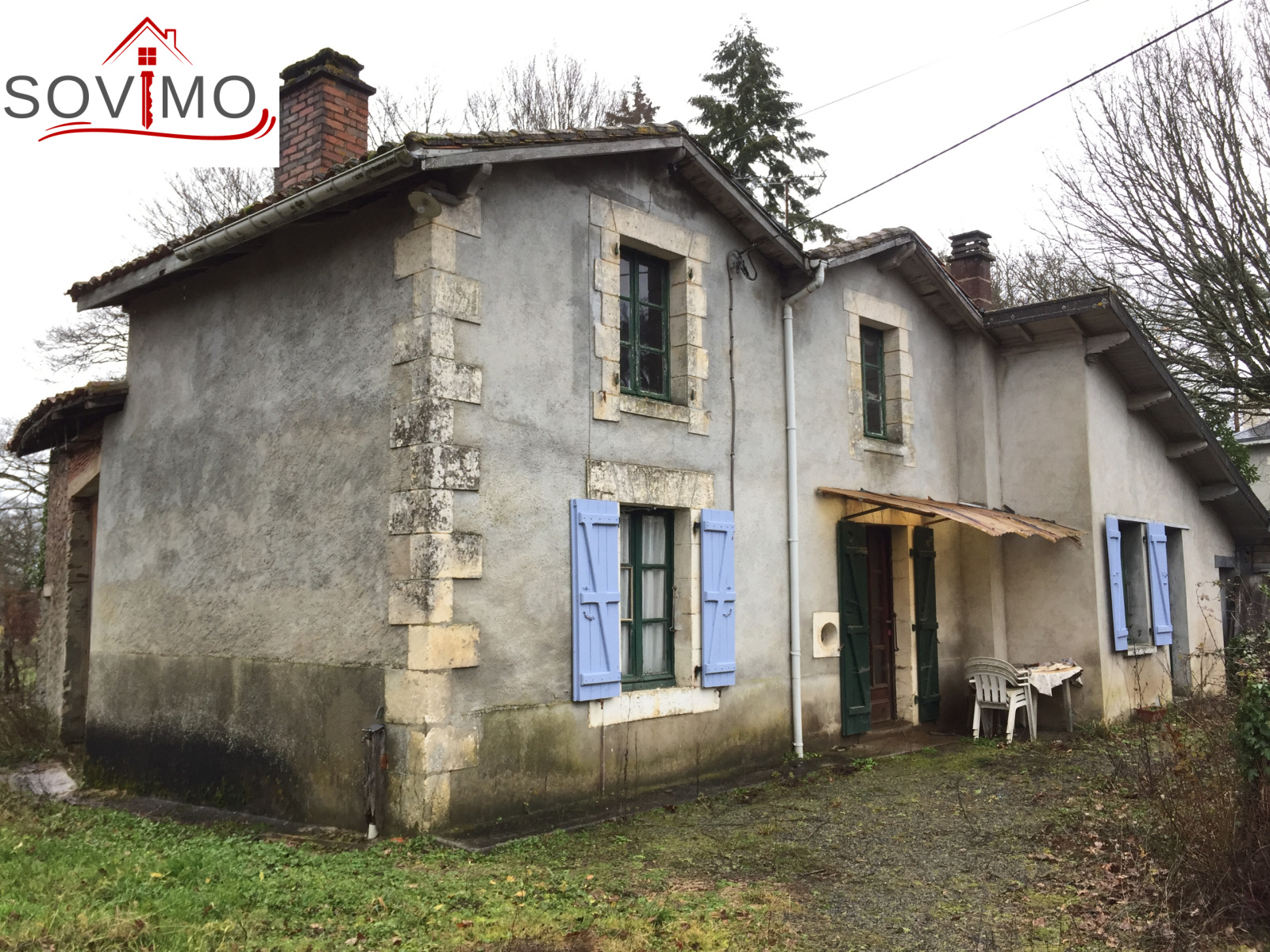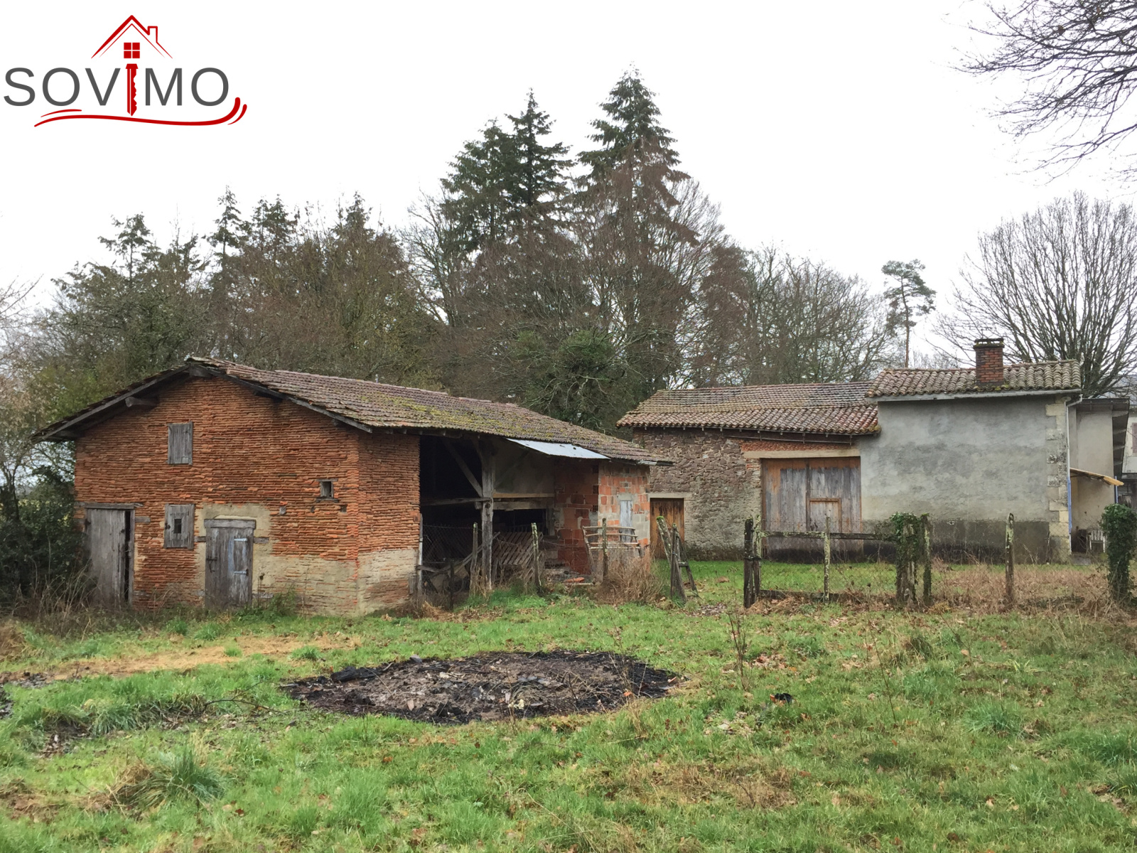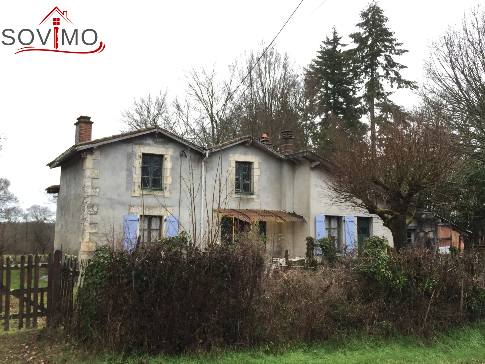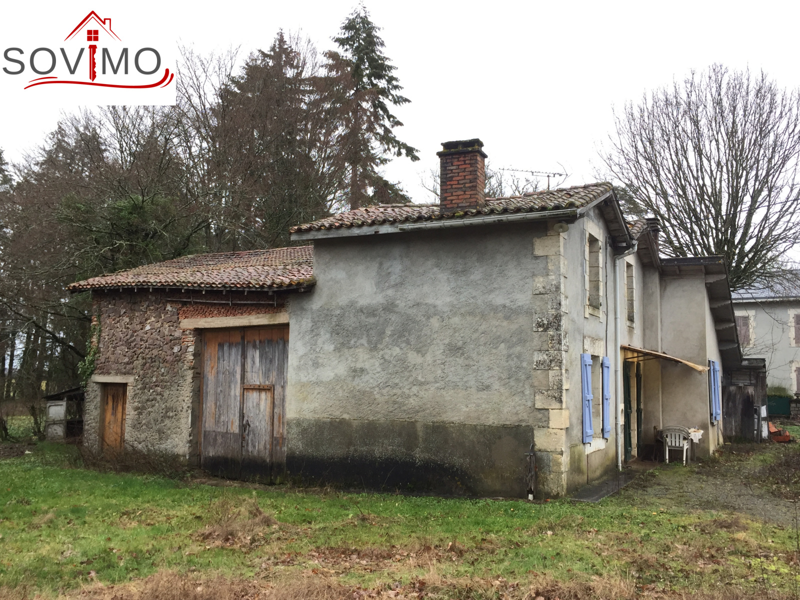 REF.34003 : 34 100 euros H.A.I, Manot (16), 9 kms de Confolens, en campagne, fermette indépendante à usage d'habitation, sans confort, à rénover, 88 m2 env. utilisables : 4 pièces, à l'étage : 2 pièces, grange attenante de 90 m2, cellier, appentis, bâtiment indépendant à usage de remise, terrain attenant avec puits de 2123 m2, en face parcelle de 3757 m2, le tout sur 5880 m2.