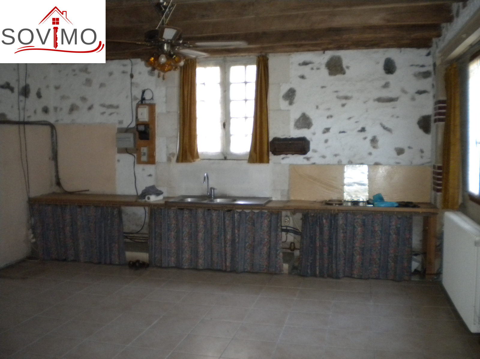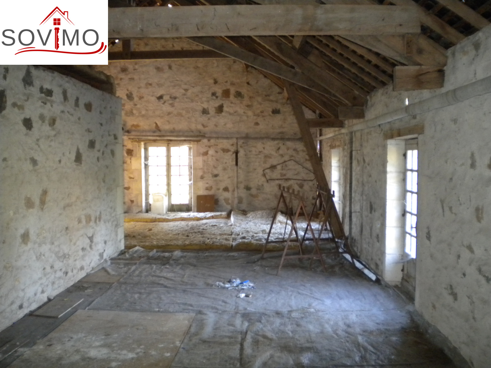 REF.33846 : 28 000 euros H.Ag.Incl., proche Asnieres/Blour (86), maison de campagne à rénover, indépendante, 133 m2 env. utilisables : entrée, cuisine, salon/séjour, remise, wc, douche, étage : 2 chambres, grenier aménageable de 75 m2, chauf. gaz bonbonne+ poele à bois, hangar fermé de 48 m2 avec chaufferie, fosse étanche, cour et terrain attenants, le tout sur 718 m2.