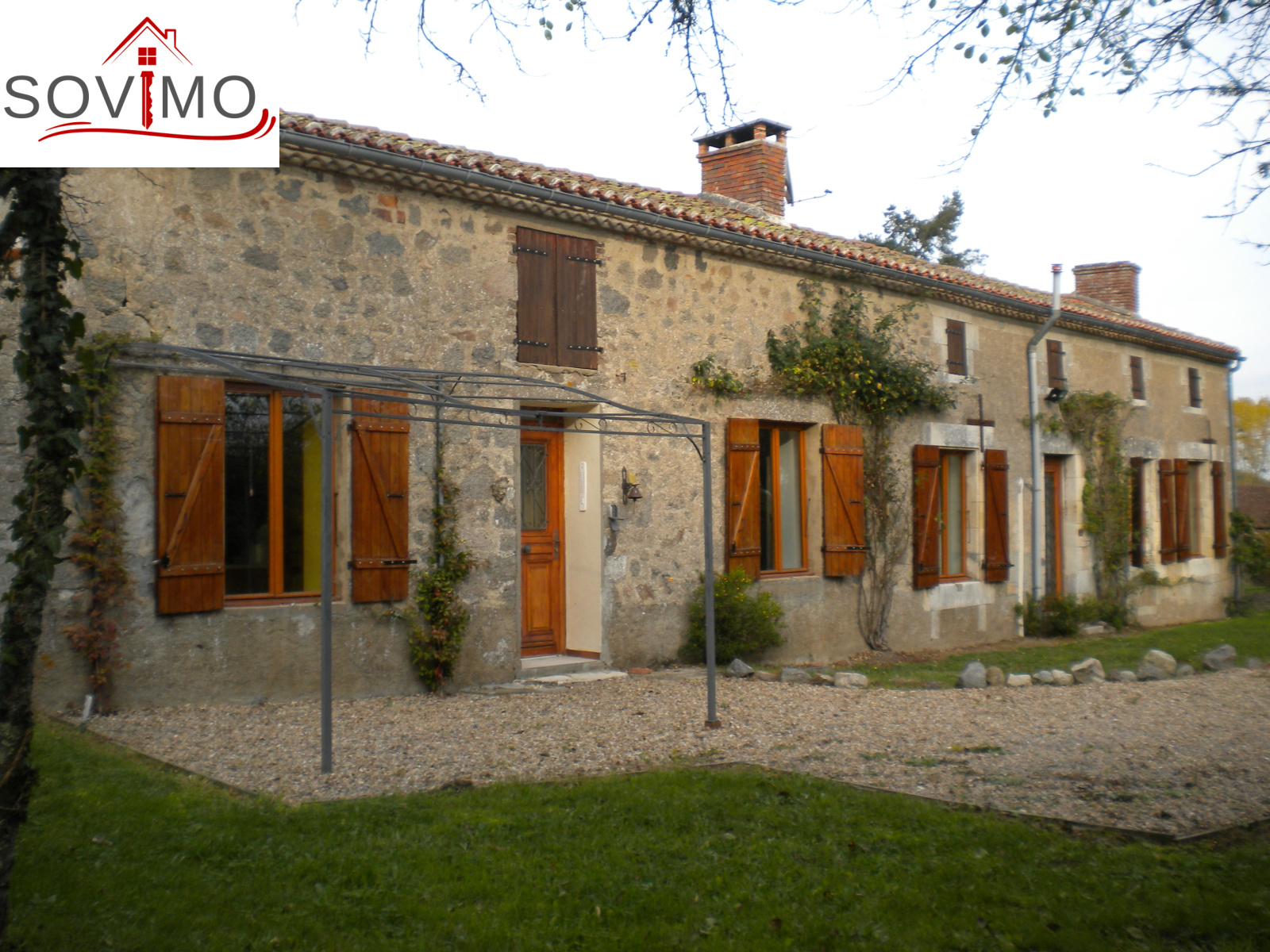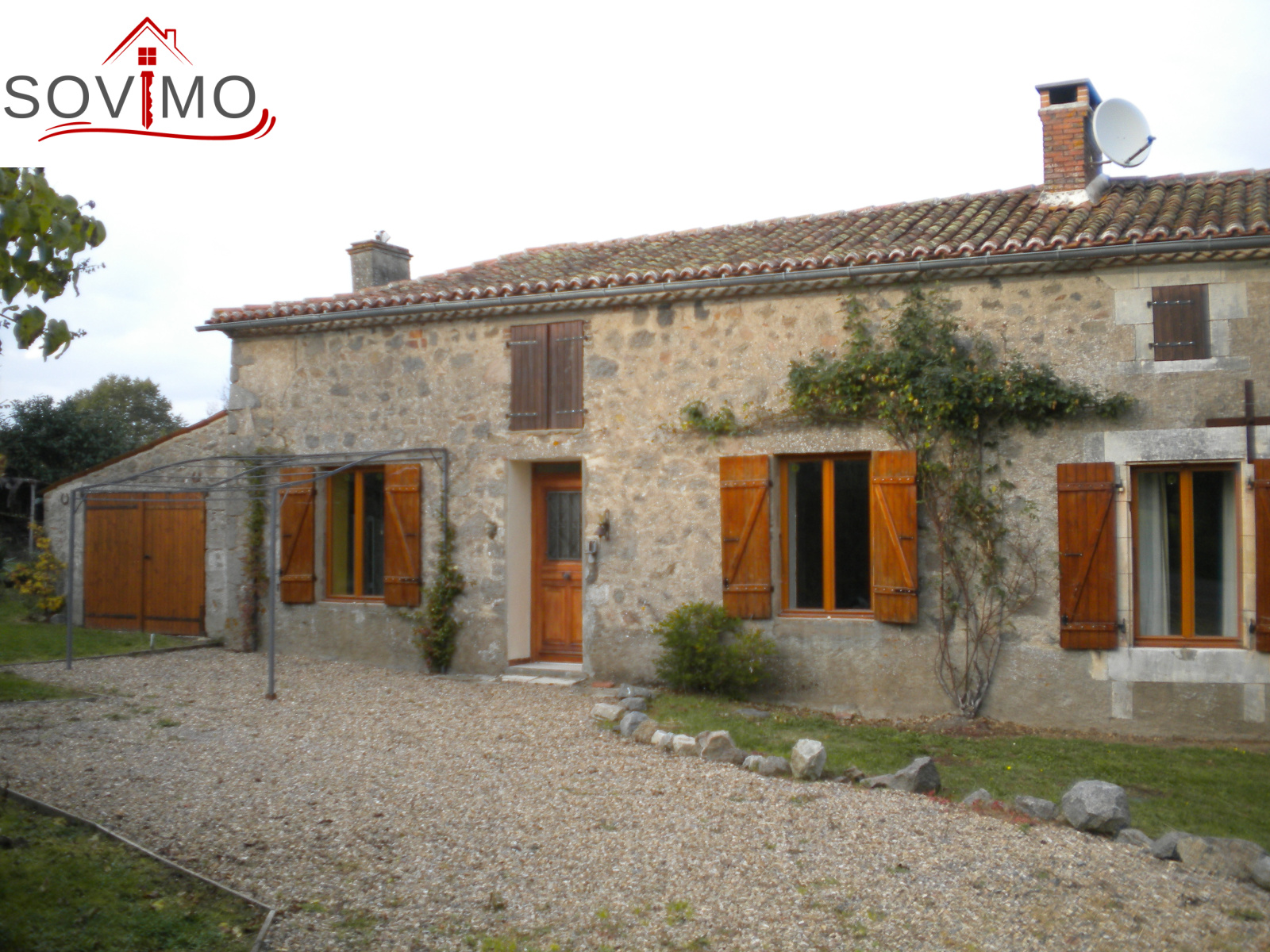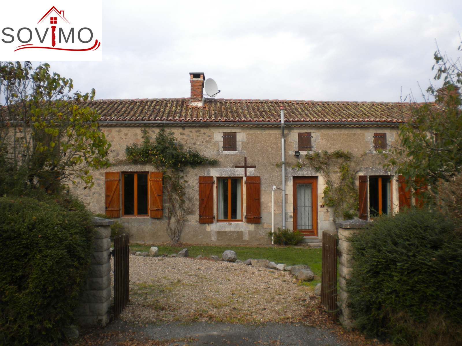 REF. 33858 : 93 500 euros H.Ag.Incl., proche Asnieres/Blour (86), en campagne, grande longère indépendante, rénovée, 100 m2 env. utilisables : entrée, cuisine aménagée équipée, séjour, salon (cheminée-insert), couloir, dégagement, 2 chambres, salle d'eau, wc, étage : bureau/chambre, 2 greniers aménageables 25 et 52 m2, chauf. électrique, fosse toute eaux conforme, garage 16 m2, terrain attenant avec petit toit, le tout sur 1310 m2.