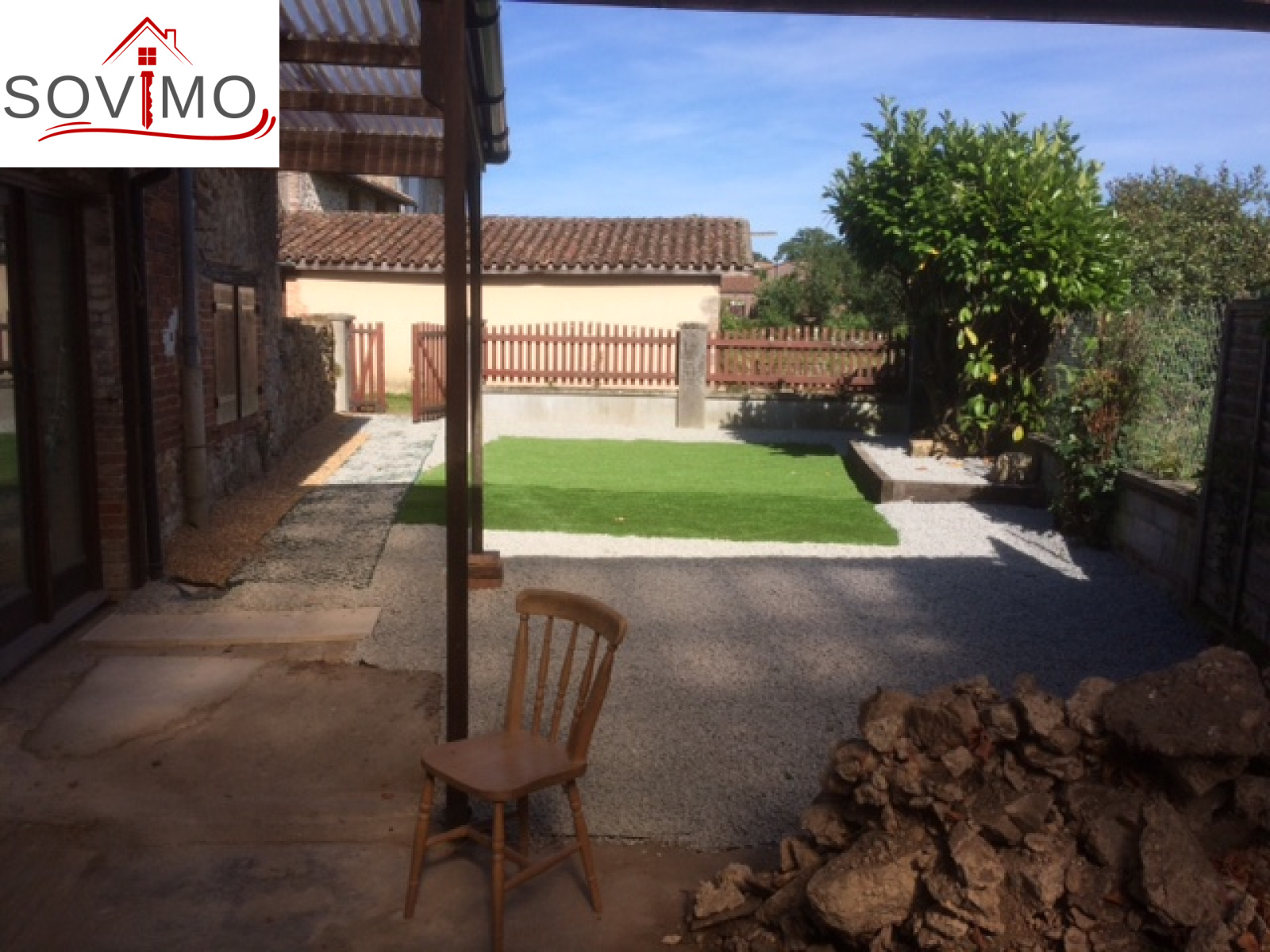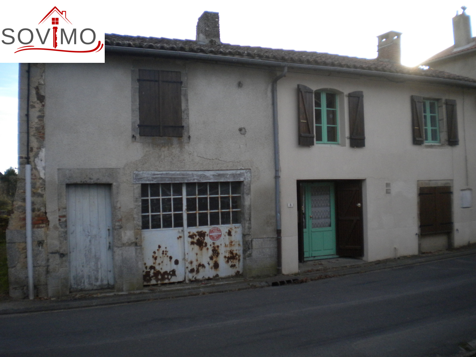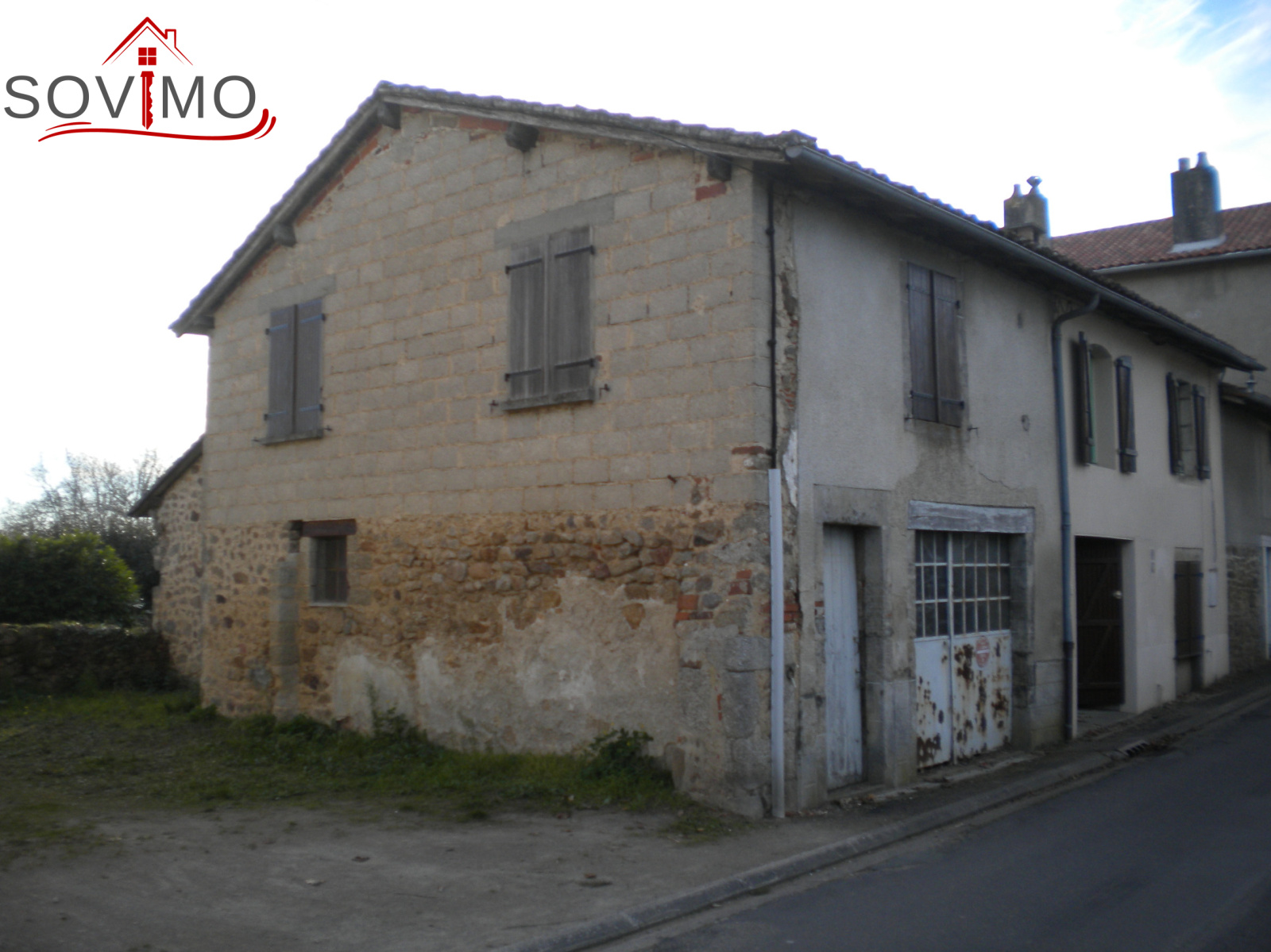 REF. 33731 : 36 300 euros H.Ag.Incl., proche Montrollet (16), avec les premiers commerces, maison de village, 100 m2 env. utilisables : entree/bureau, cuisine aménagée/séjour, salon, salle d 'eau, wc, buanderie, à l'étage : palier, 2 chambres, salle de bain/wc, grenier mansardé, garage attenant 25 m2 avec grenier et débarras, tout à l'égout, jardinet à l'arrière, le tout sur 235 m2.