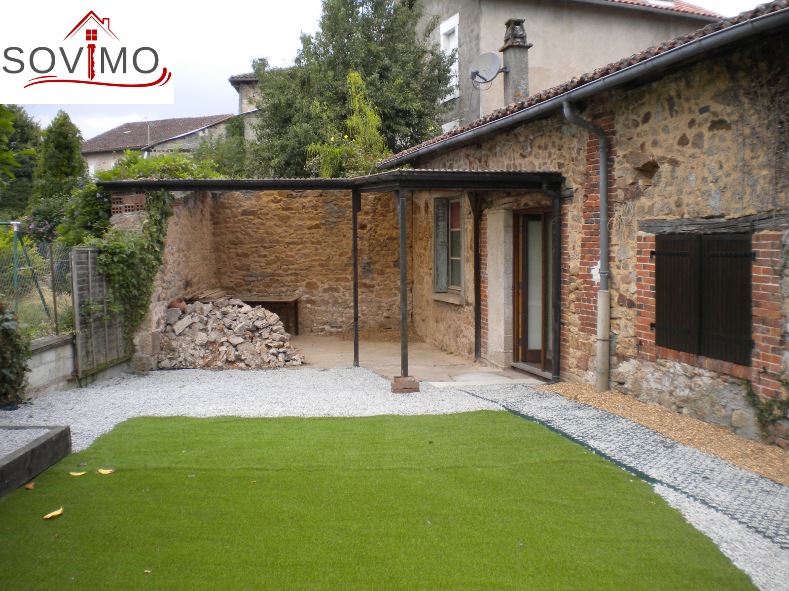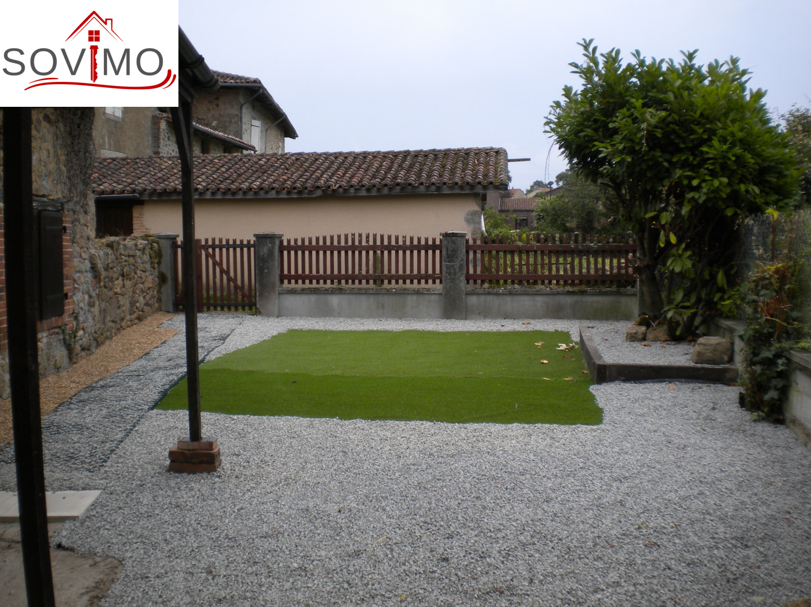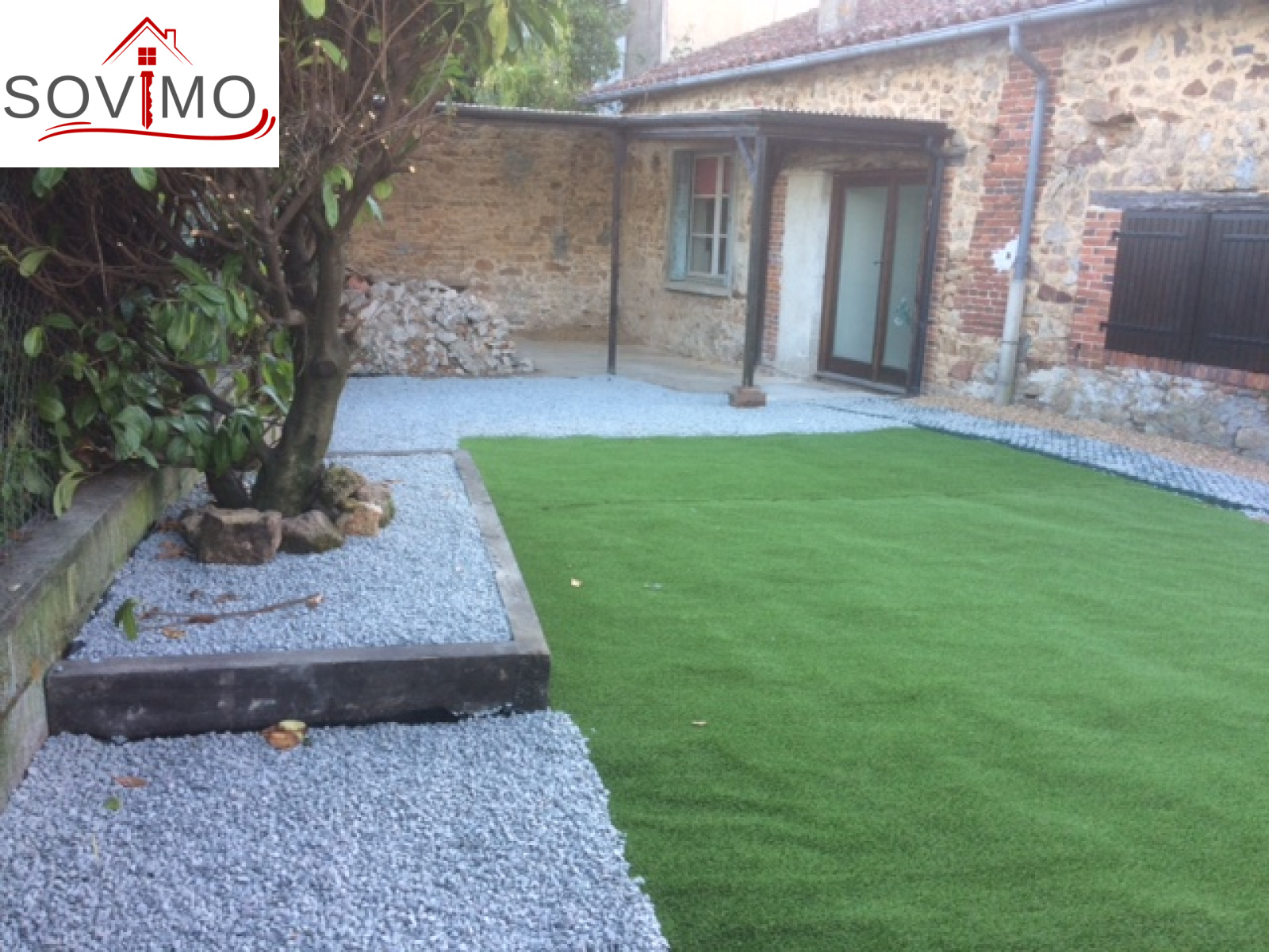 REF. 33731 : 36 300 euros H.Ag.Incl., proche Montrollet (16), avec les premiers commerces, maison de village, 100 m2 env. utilisables : entree/bureau, cuisine aménagée/séjour, salon, salle d 'eau, wc, buanderie, à l'étage : palier, 2 chambres, salle de bain/wc, grenier mansardé, garage attenant 25 m2 avec grenier et débarras, tout à l'égout, jardinet à l'arrière, le tout sur 235 m2.