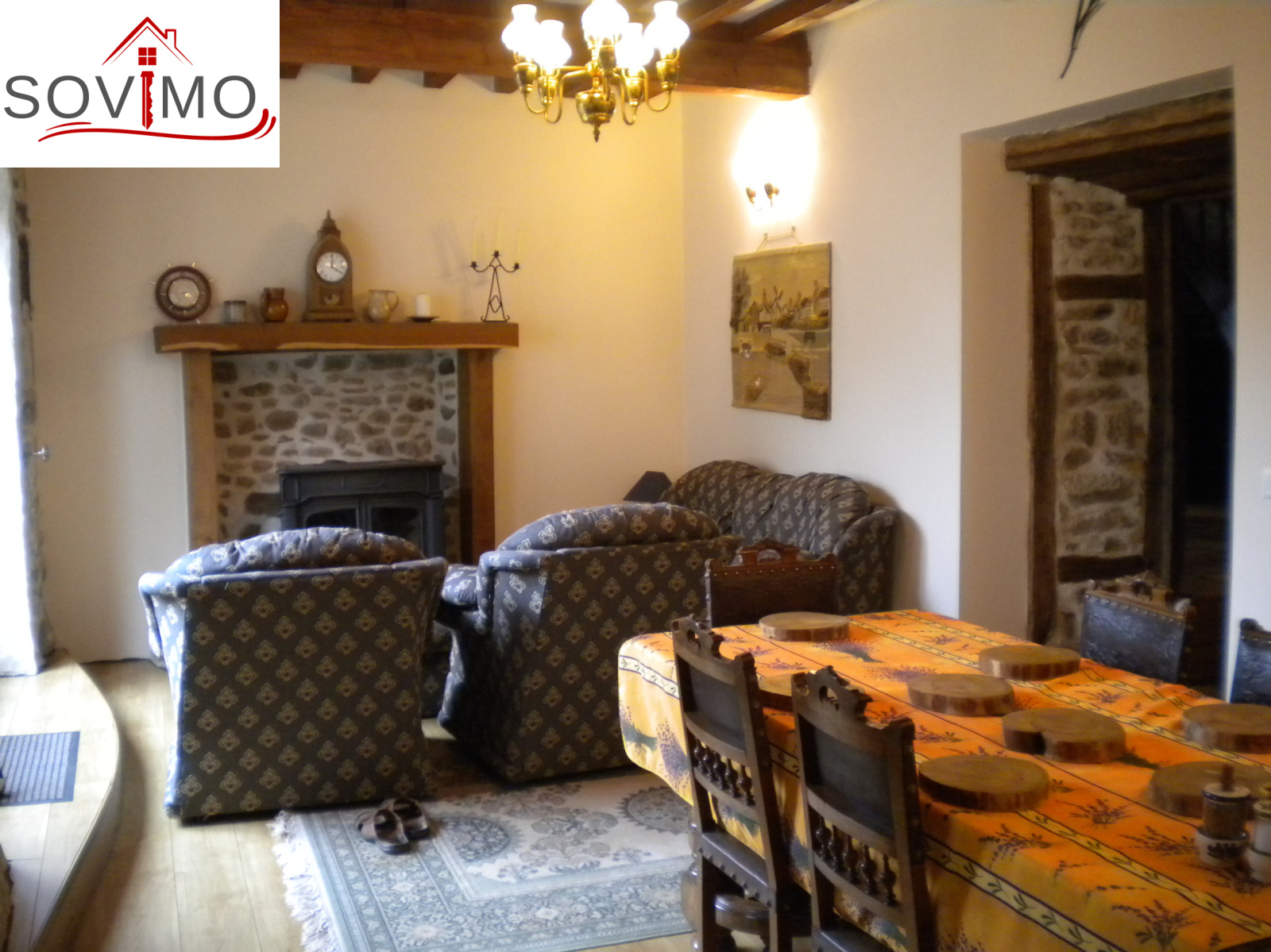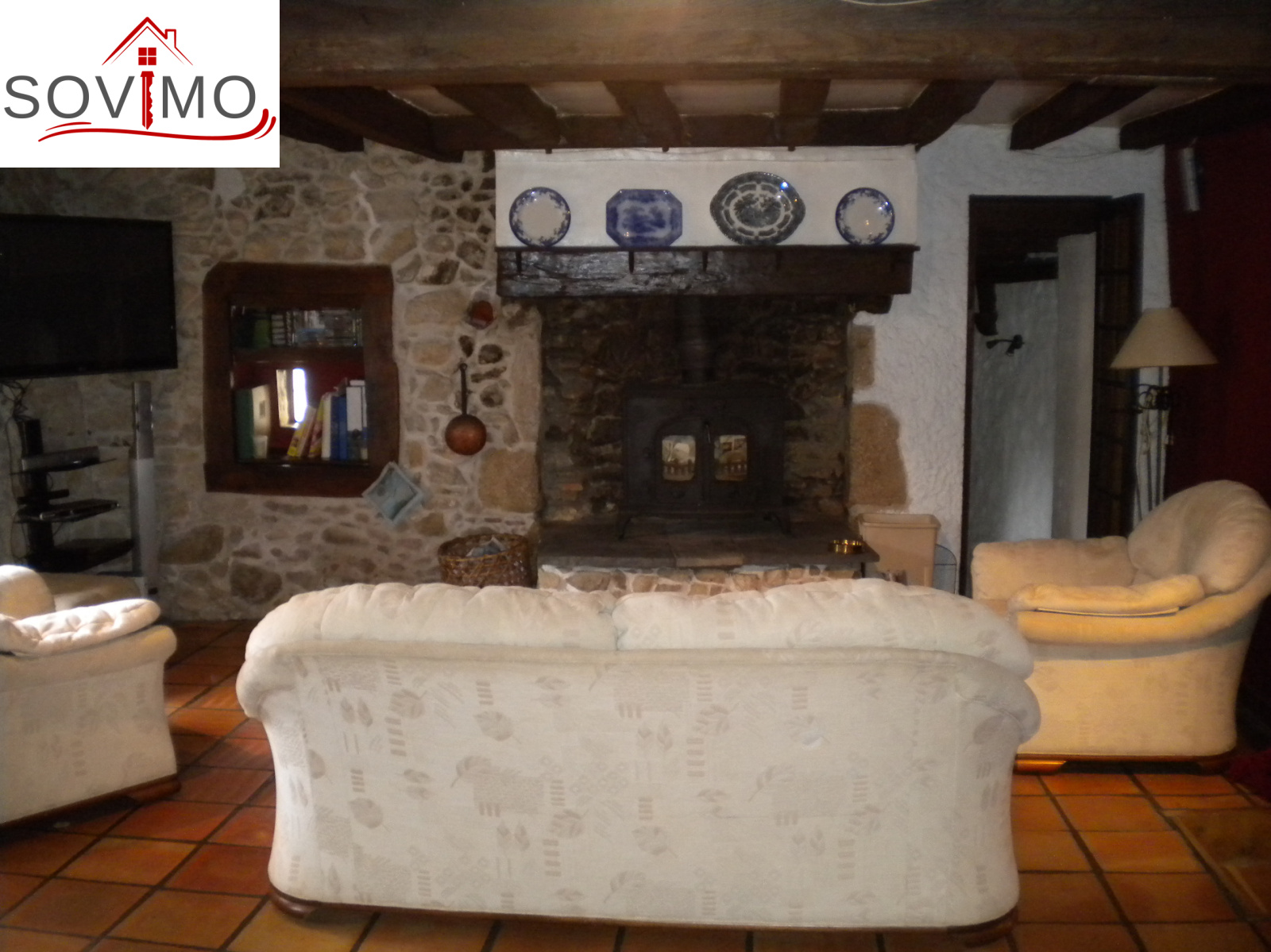 INFORMATIONS COMPLEMENTAIRES : chauffage par 2 poeles à bois, cumulus électrique de 200 L, double et simple vitrage bois, volets bois, construction pierre, toiture tuile état d'usage, collecteur communal (assainissement).