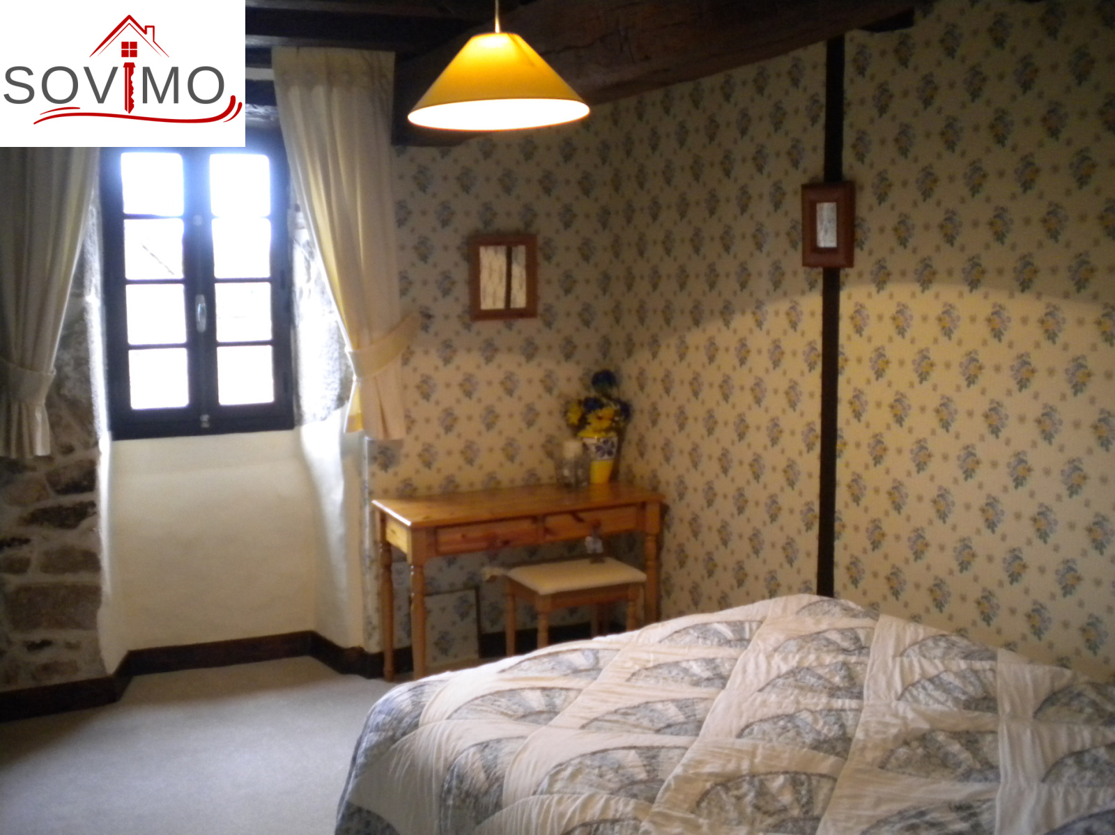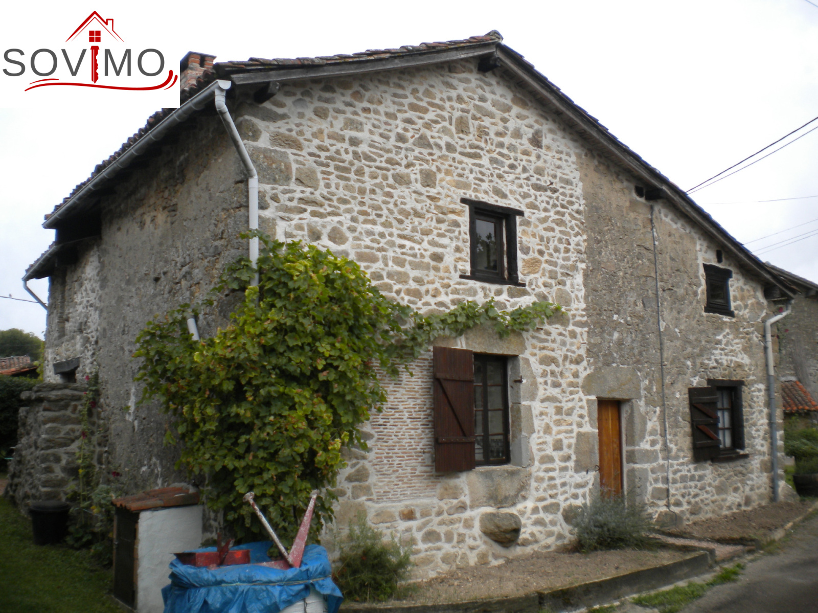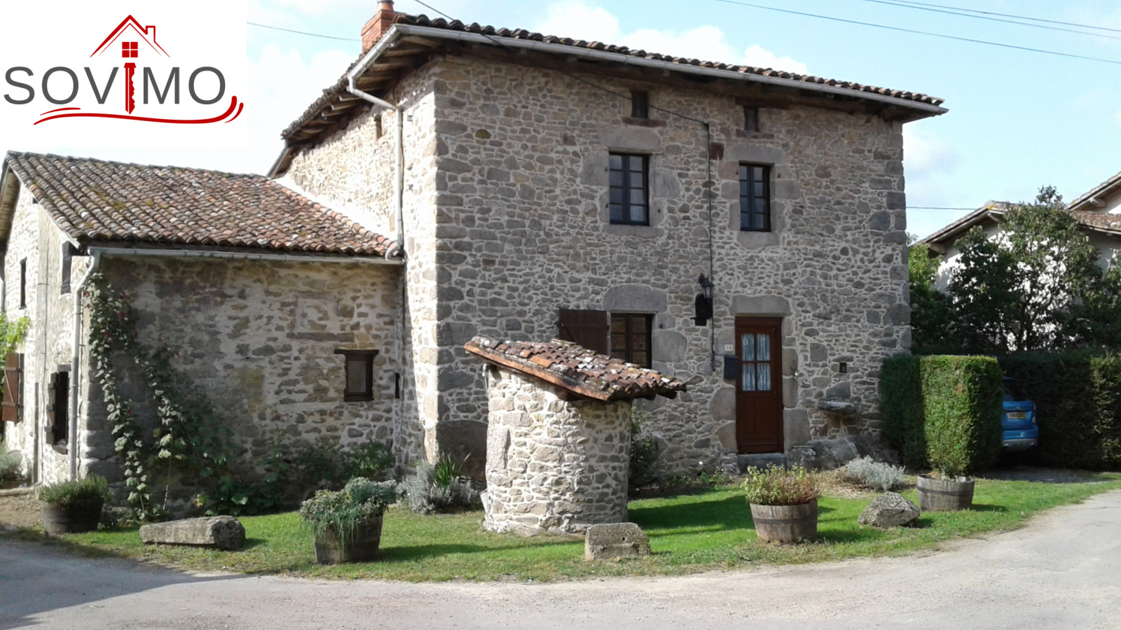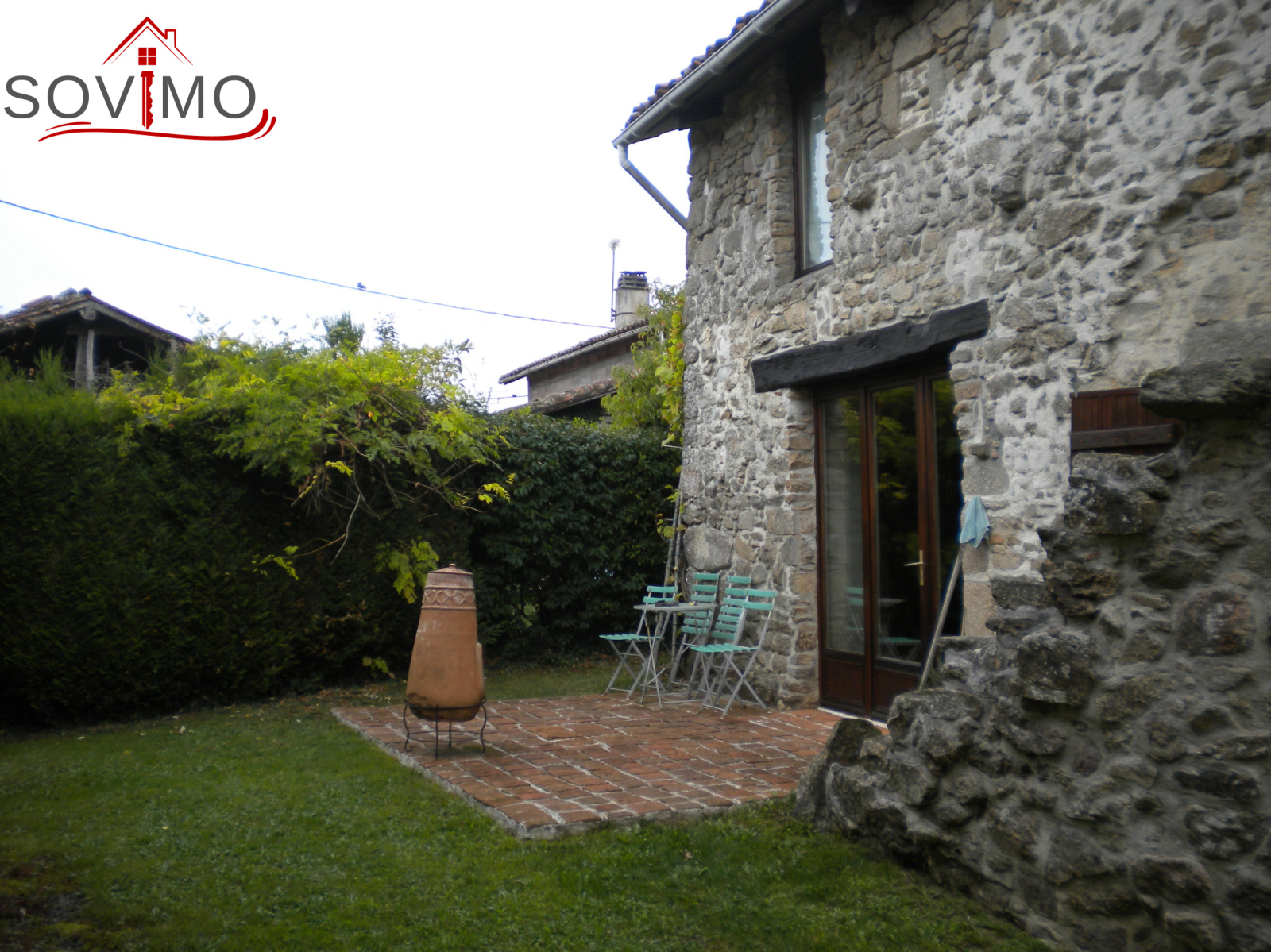 REF: 33833 : 77 000 euros H.Ag.Incl., MONTROLLET (16), proche St Junien, jolie maison de campagne indépendante rénovée, meubles inclus si souhaités par les acquéreurs, 168 m2 env. utilisables : cuisine amé.équipée, séjour, salon, couloir, salle de bain, wc, étage : palier, 3 chambres dont 1 avec sdb/wc et dressing, collecteur communal, jardinet attenant avec puits sur 290 m2, terrain séparé avec abri sur 148 m2, le tout sur 438 m2.