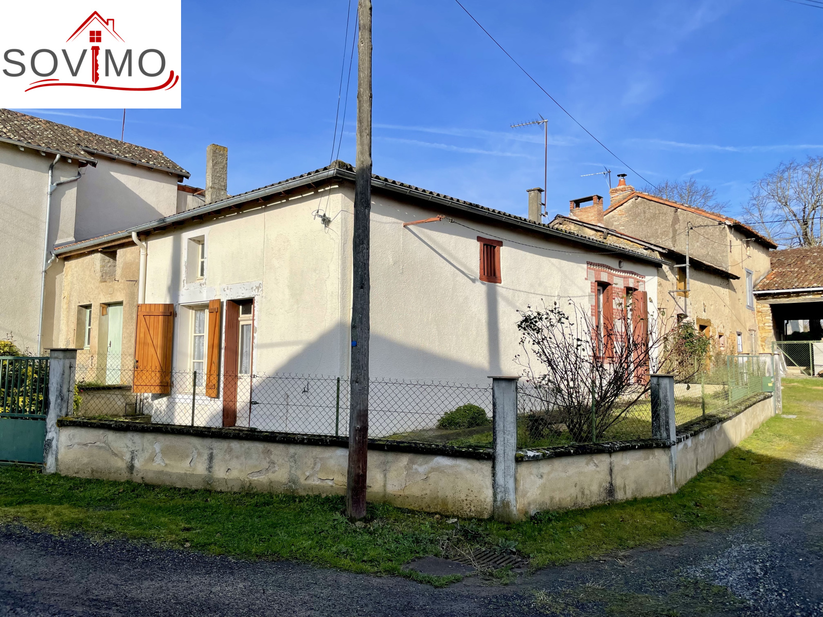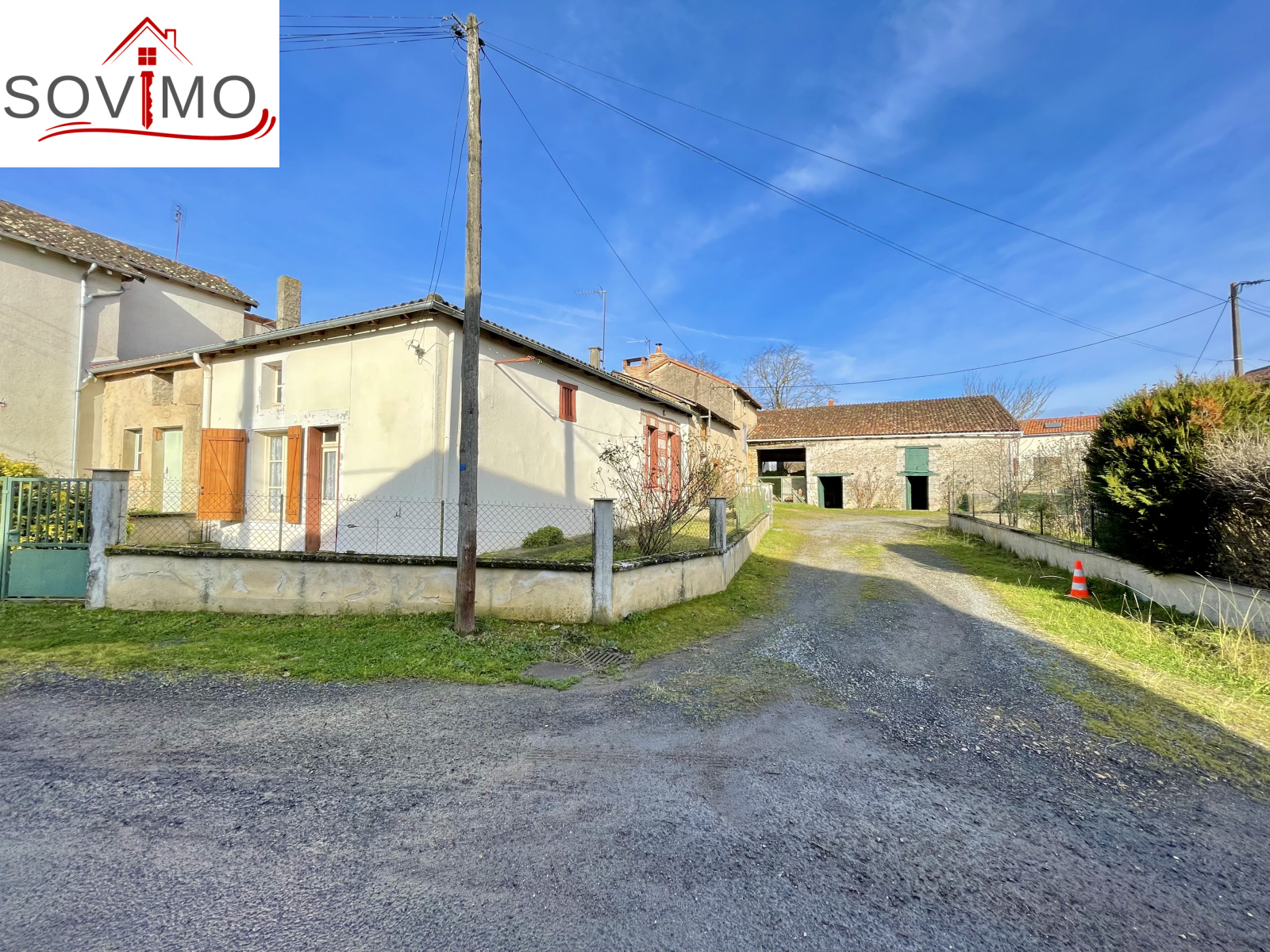 REF. 34716 : 28 000 euros H.A.I, Moussac (86), à 7 kms de L'Isle Jourdain avec tous commerces, dans un hameau, maison de campagne, plain pied, mitoyenne, à rafraichir, à usage d'habitation, 52 m2 env. utilisables, composée au rez de chaussée : cuisine/séjour (cheminée avec insert), couloir, salle d'eau, wc, 1 chambre, grenier isolé au dessus. Chauf. fuel, ancienne fosse septique, Cour/jardinet attenant sur 102 m2. En face, grange séparée de 50 m2 avec ancienne étable et grenier au dessus. + 3 parcelles séparées non closes, le tout sur 4144 m2