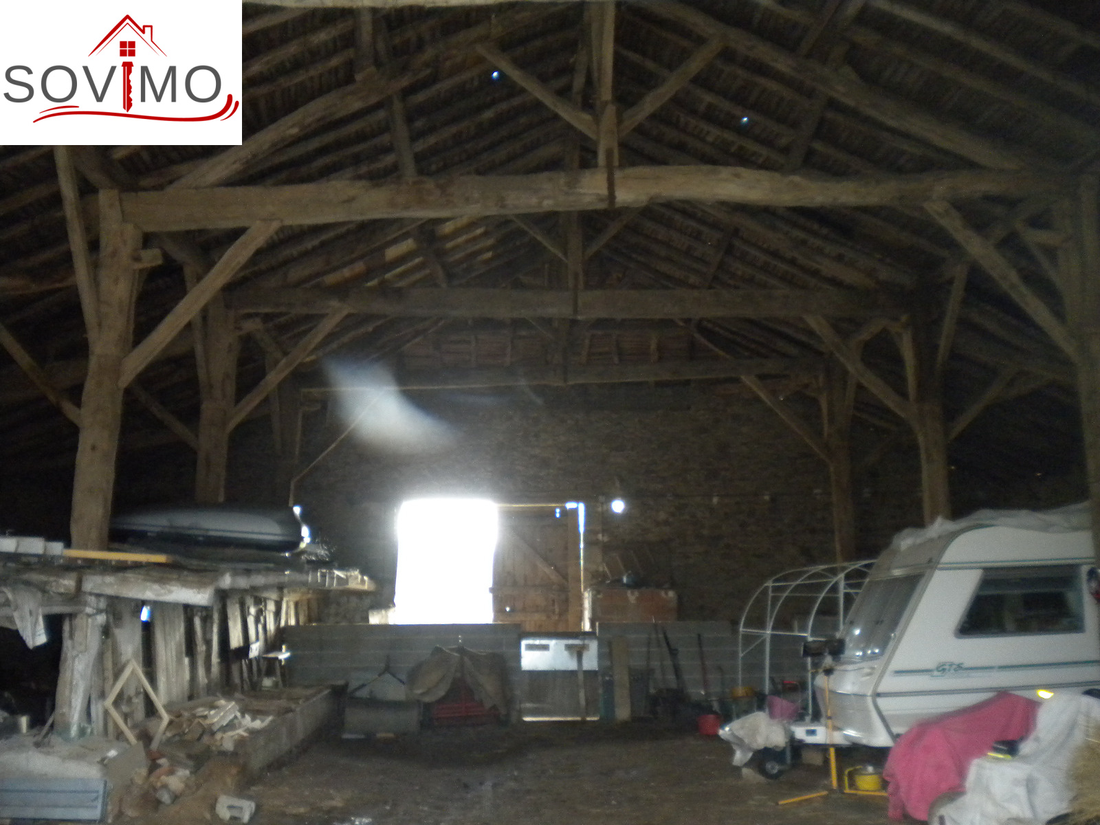 grange avec étable 350 m2 (toiture tuile état d'usage), atelier, garage, 2 puits, petit toit