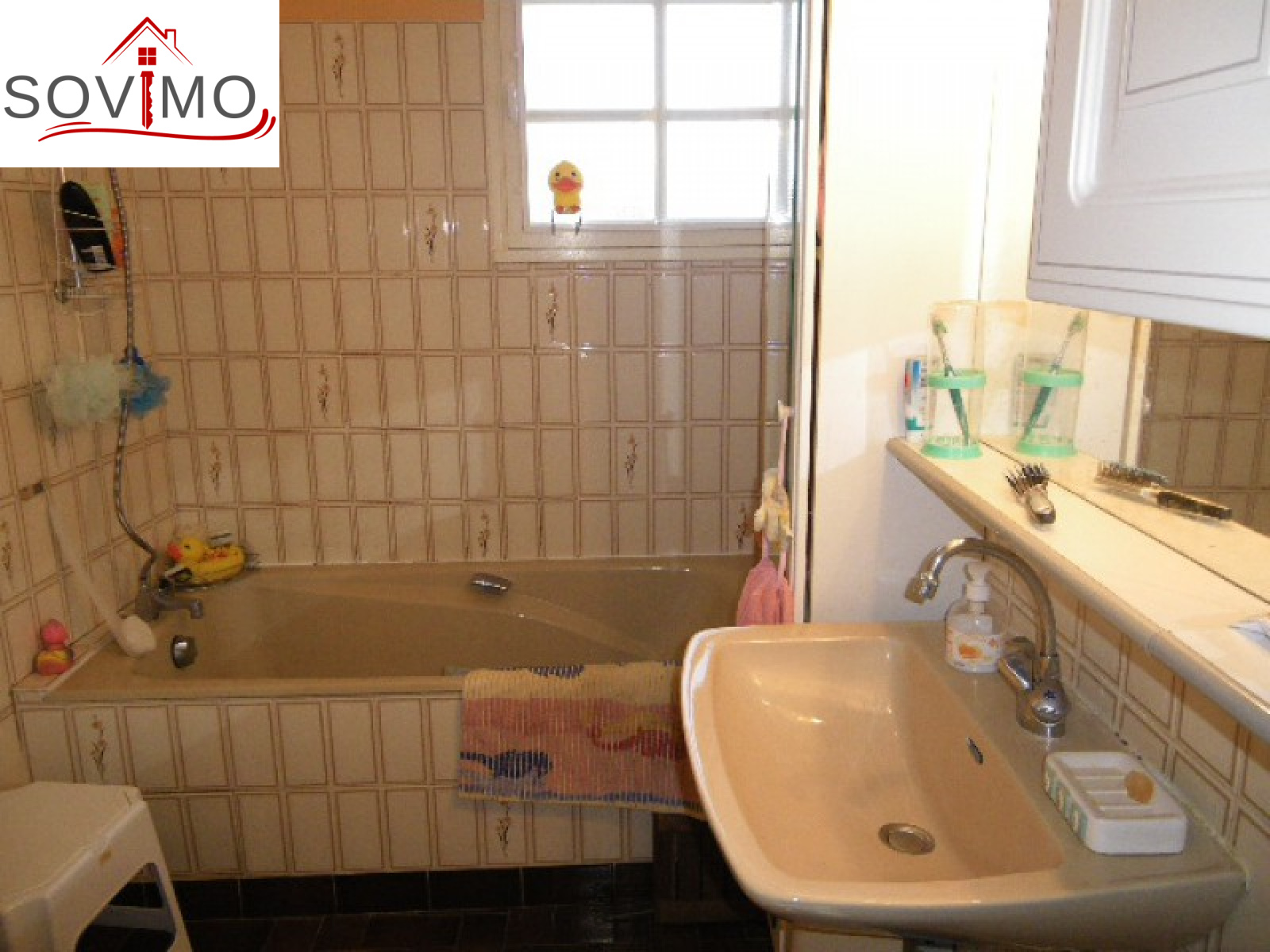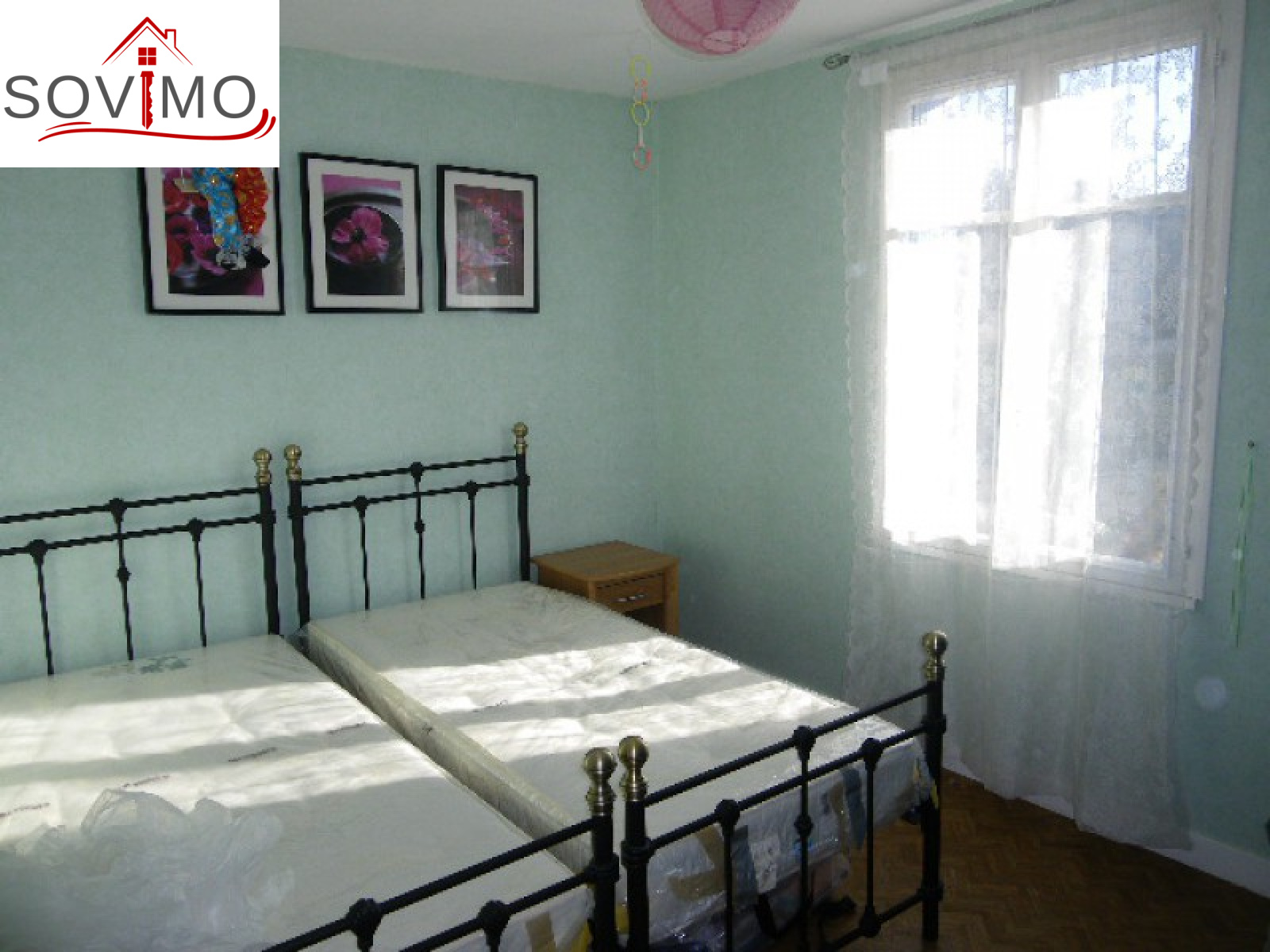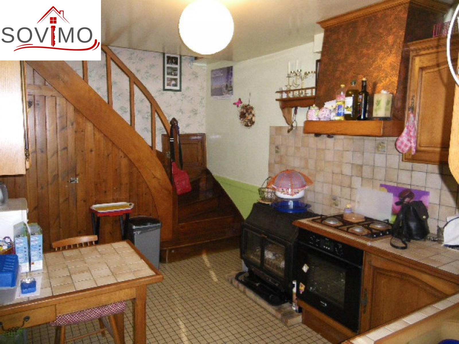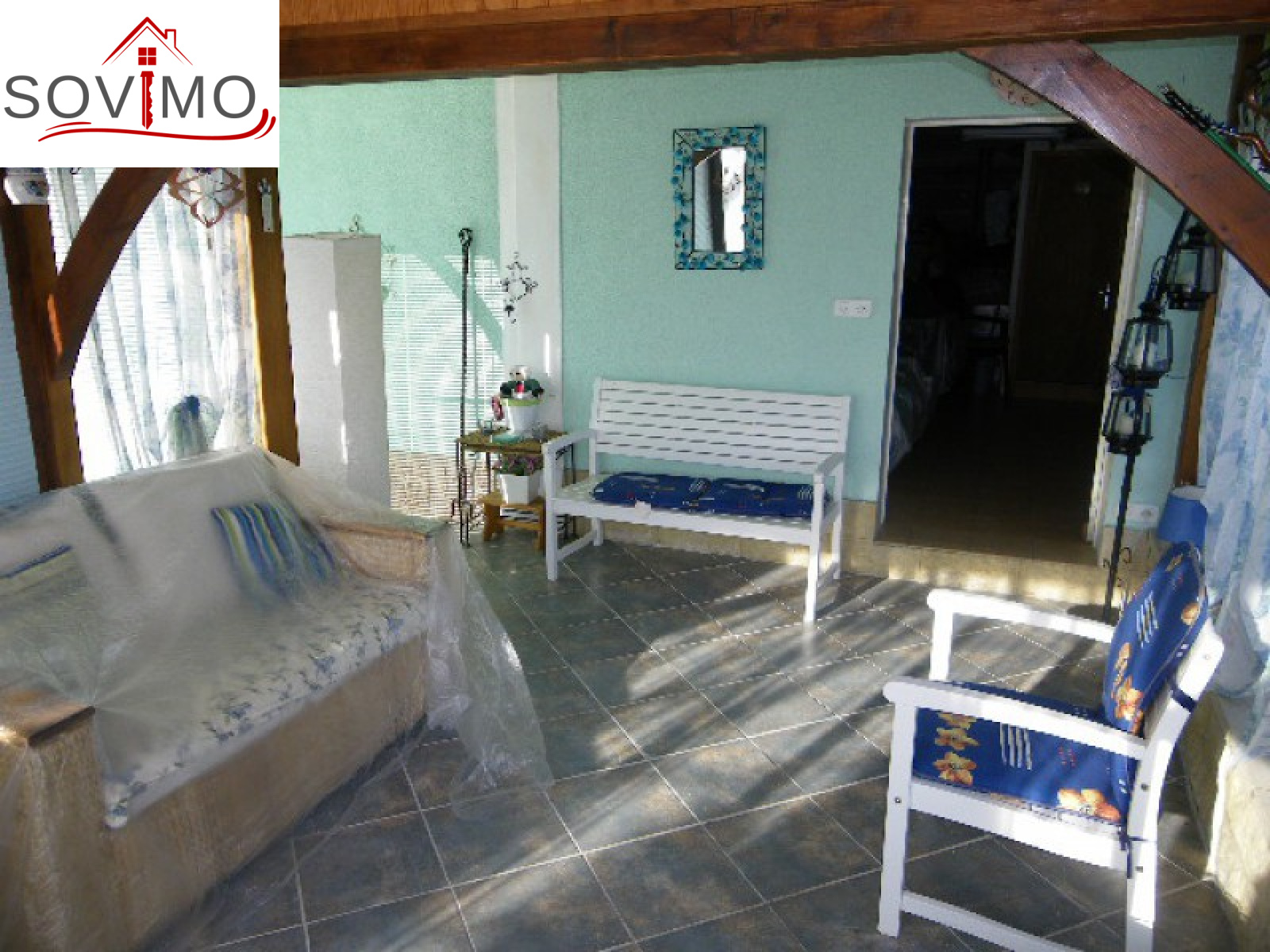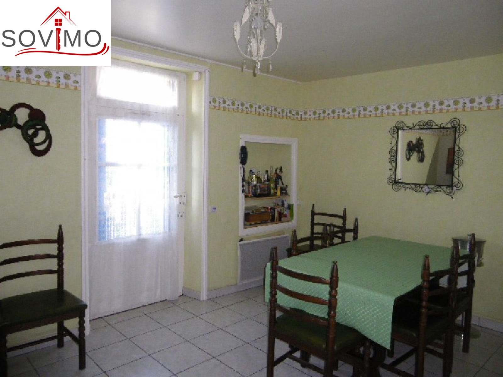 Charente (16), dans bourg avec épicerie/dépôt de pain et sur demande restauration, maison mitoyenne, tout confort, 95 m² env. utilisables : véranda, cuisine aménagée équipée, séjour, buanderie/wc, étage : palier, 3 chambres, salle de bain, wc, chauf.électrique + poele à bois, grenier, garage séparé, tout à l'égout, terrain attenant avec puits, le tout sur 414 m² env.