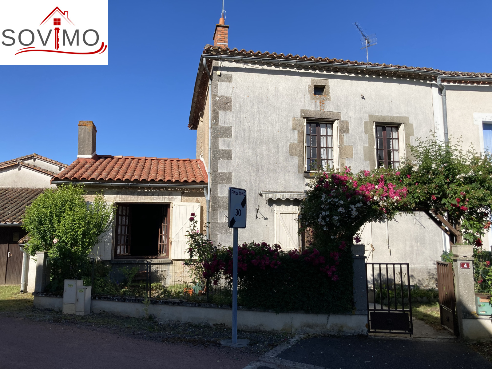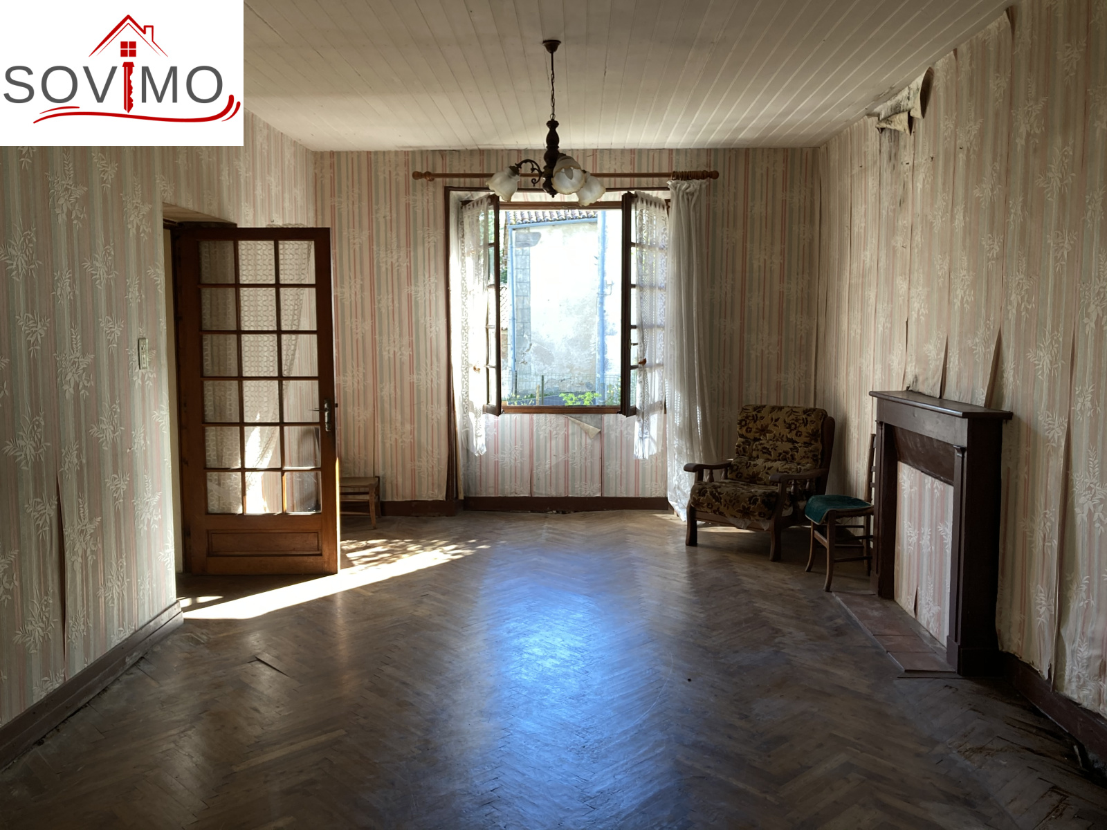 REF : 34142 : 44 000 euros H.A.I, Oradour Fanais (16), secteur Confolens, maison de village habitable avec quelques travaux intérieurement, à usage d'habitation, 90 m2 env. utilisables : cuisine/séjour (cheminée), salon (cheminée), dégagement, salle d'eau, wc, étage : palier, 3 chambres, grenier utilisable de 35 m2, tout à l'égout, garage mitoyen de 55 m2 avec grenier au dessus, débarras, remise, cour et terrain attenants, le tout sur 479 m2.