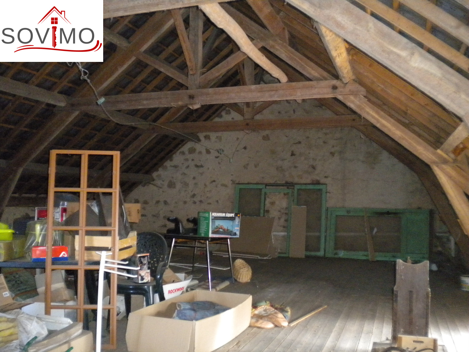 Grenier aménageable, garage attenant 52 m2 avec grenier au dessus 99 m2, puits, abri de jardin.