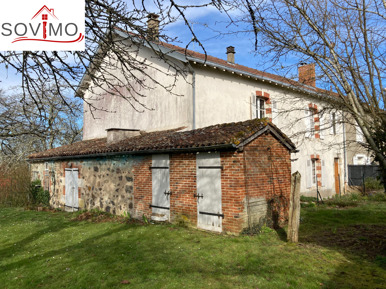 RÉF. 34360 : 104 500 euros H.A.I, Oradour Fanais (16), secteur Confolens, maison de village habitable, mitoyenne, à usage d'habitation, 135 m2 env. utilisables : entrée, cuisine, salle à manger, 2 chambres, salle d'eau, wc, remise de 5 m2, chaufferie de 8 m2, à l'étage : palier, 4 chambres, grenier aménageable de 58 m2 avec cabinet de toilette, chauf. fuel, assainissement collectif, 2 garages 48 m2, four à pain/cellier de 14 m2, petits toits, puits, terrain attenant de 3949 m2, en face séparé terrain avec garage de 1984 m2, le tout sur 5933 m2.