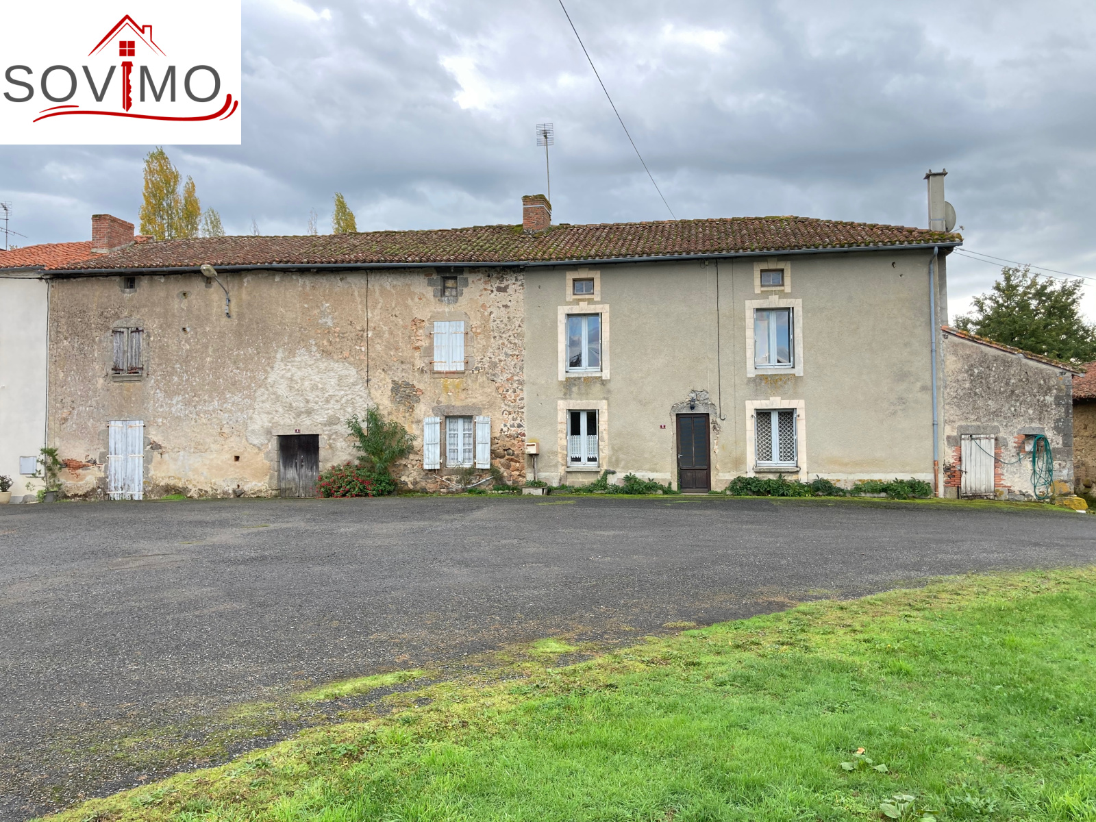 REF. 34194 : 44 000 euros H.A.I, Oradour Fanais (16), secteur Confolens, dans un hameau, beau potentiel, gite et/ou chambres d'hôtes pour ces 2 maisons à rénover, à usage d'habitation, 167 m2 env. utilisables : 1ere habitation, 104 m2 env. composée : entrée, cuisine (cheminée), séjour, remise, wc, à l'étage : palier, 3 chambres, salle de bain, chauf. fuel, grenier au dessus, terrasse couverte de 30 m2, cuisine d'été, cellier, chaufferie, appentis, ancienne fosse septique, 2nd habitation mitoyenne à rénover, 63 m2 env. composée : cuisine/séjour (cheminée), 1 pièce à aménager (cheminée) de 36 m2, à l'étage : palier, 2 chambres, 1 pièce à aménager (cheminée) de 36 m2, grenier au dessus. Terrain attenant avec puits, le tout sur 31a 37ca.