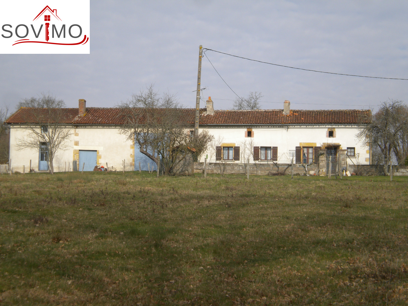 REF. 33888 : 99 000 euros H.A.Incl., proche PRESSAC (86), dans un hameau, jolie vue sur la vallée, longére indépendante sur 2 ha env., beau potentiel, 82 m2 env. utilisables : cuisine/séjour, arrière cuisine, salon (cheminée-insert), 3 chambres, salle de bain, wc, 2 greniers aménageables 32 et 33 m2 + remise 23 m2, chauf. élec., grange attenante avec étable 75 m2, + ancienne maison attenante à rénover, 37 m2 : 2 pièces, grenier aménageable, garage indépendant de 30 m2, fosse septique ancienne, terrain attenant avec puits et petit toit.