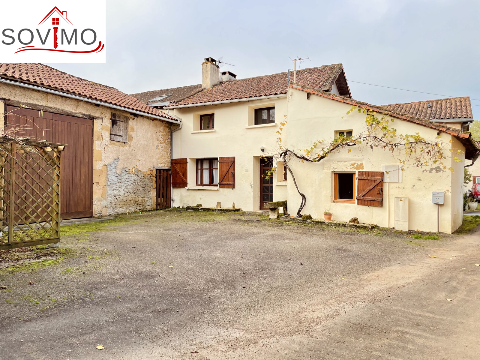 REF. 34676 : 99 000 euros HAI, A 2 kms du village pittoresque de Pressac (86) avec premiers commerces, au calme, maison de campagne rénovée, mitoyenne, à usage d'habitation, 71,50 m2 env. utilisables, composée au rez-de-chaussée : cuisine aménagée et équipée/séjour (poêle à bois), dégagement, salle d'eau avec baignoire/wc, à l'étage : palier avec accès grenier mansardé, deux chambres. Chauf. électrique, assainissement collectif. Grange attenante de 110 m2 avec électricité + passage accès jardin, jardin attenant clos avec puits et abri, le tout sur 510 m2.
