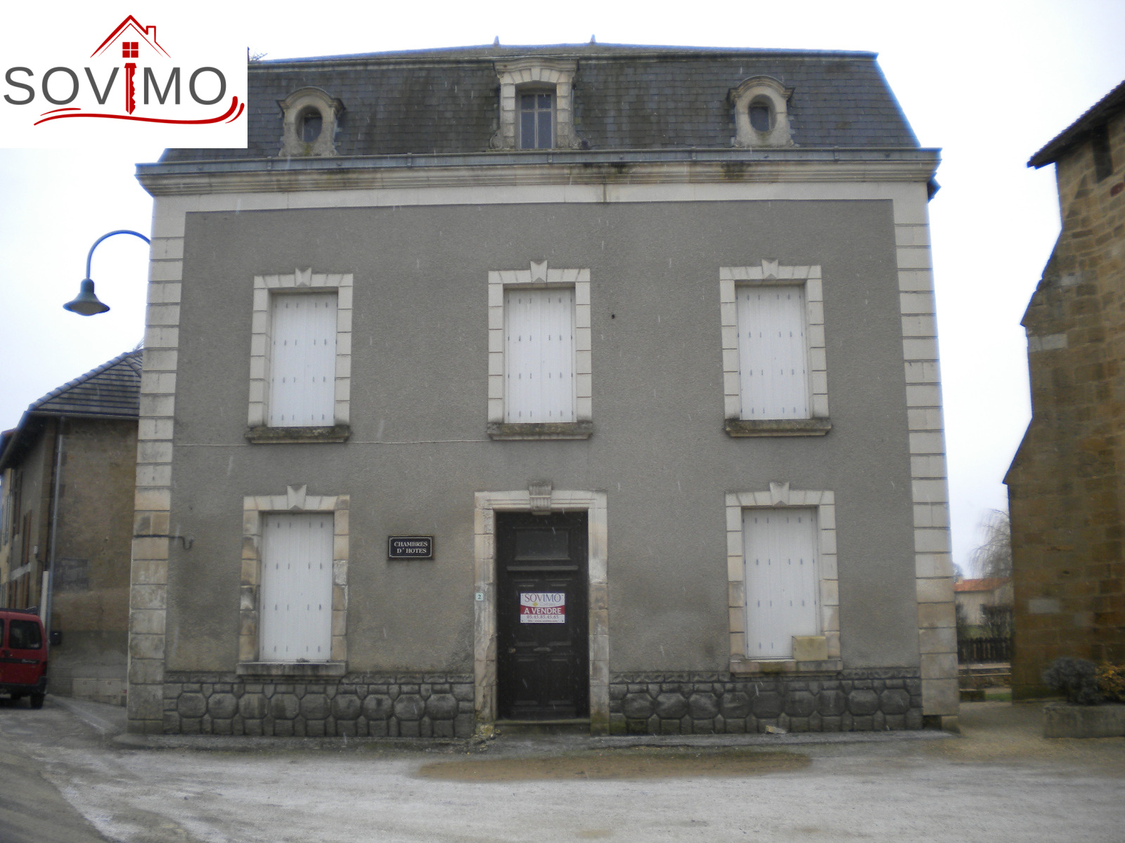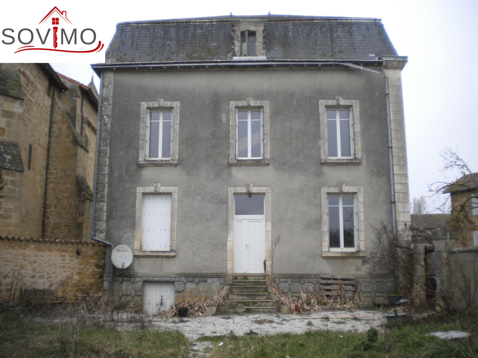 Réf. 27276 : 55 000 euros H.Ag.incl., Pressac (86), dans un bourg, ancienne maison bourgeoise indépendante, avec vue sur la rivière, 163 m² env. utilisables, travaux à prévoir, cuisine amé.équip., salon/séjour, 1 chambre, wc, étage : palier, 4 chambres dont 2 avec sd'eau/wc, salle de bain/wc, chauf. fuel, grenier utilisable, cave, tout à l'égout, jardin sur l'arrière, le tout sur 530 m² env.