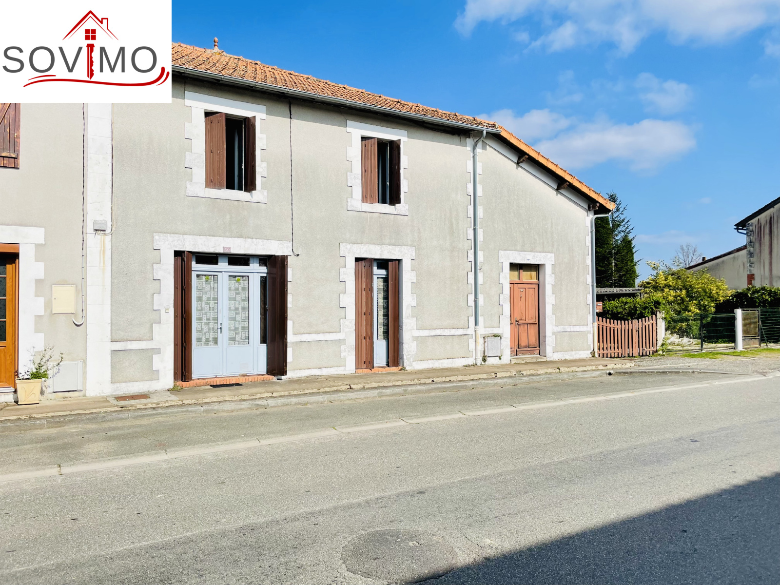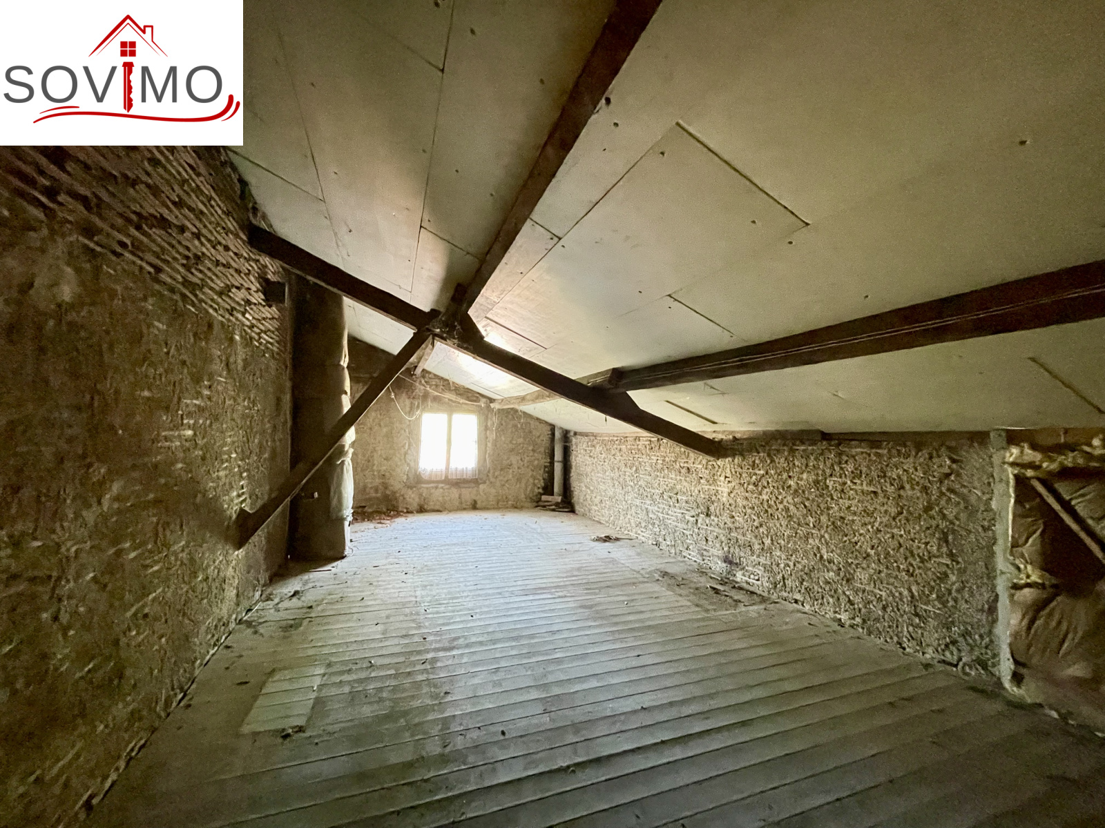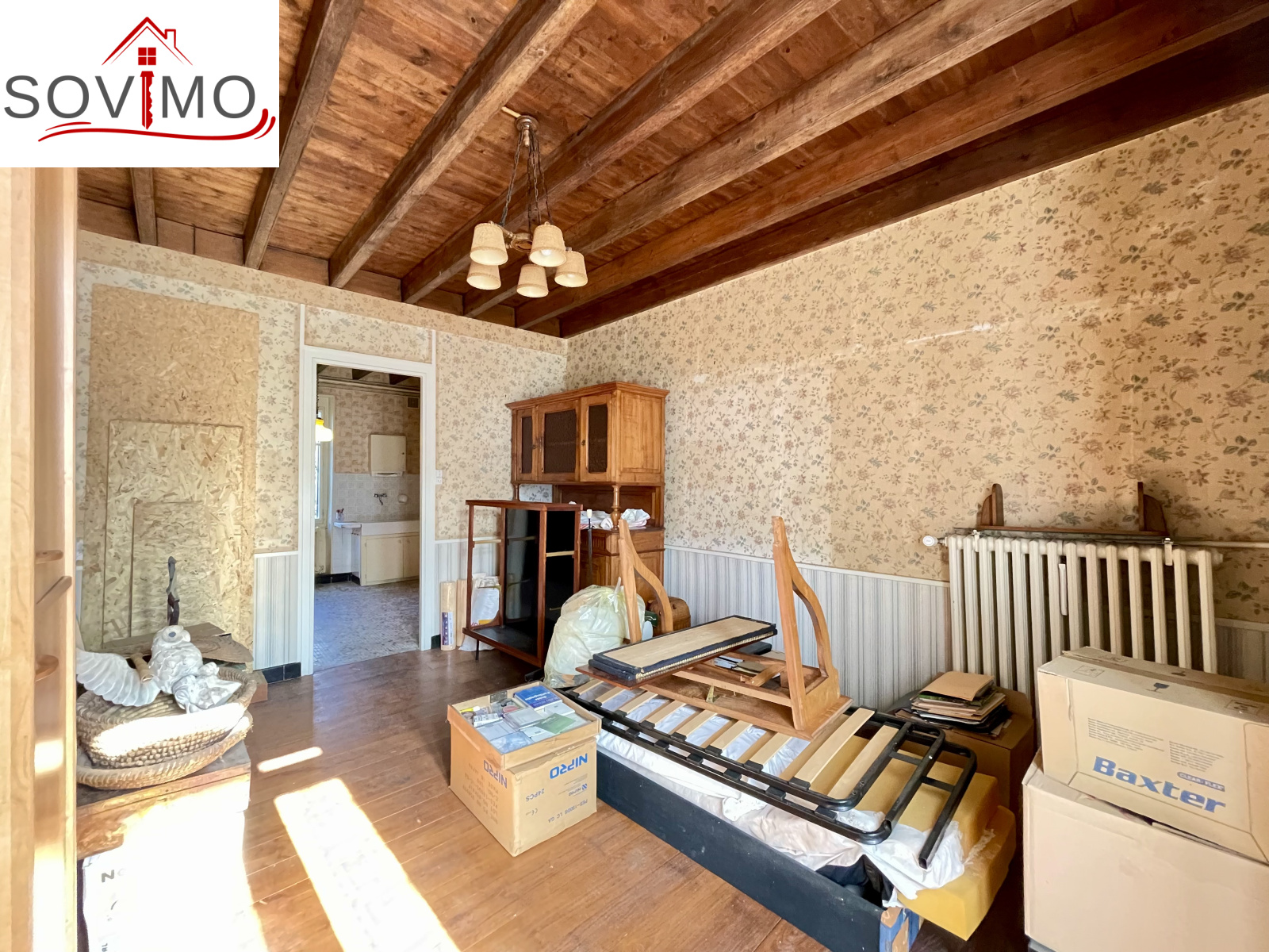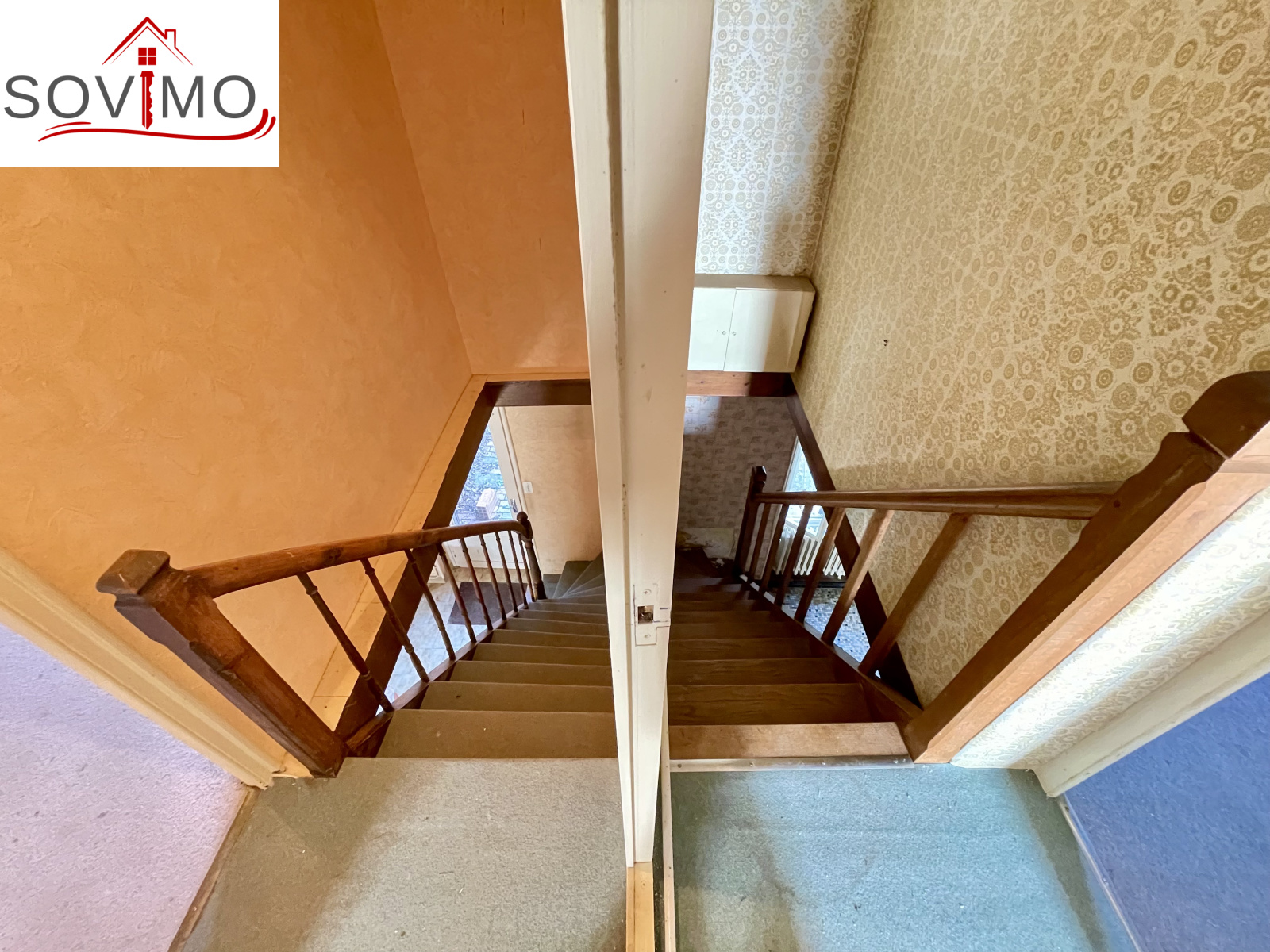 REF. 34729 : 88 000 euros H.A.I, Roumazières (16) petite ville avec tous commerces, maison familiale mitoyenne à rafraichir entièrement, à usage d'habitation, 155,50 m2 env. utilisables, composée au rez de chaussée : cuisine, salon, salle de bain/wc avec accès jardin, 2nde cuisine, salle à manger, dégagement, salle d'eau, cellier/chaufferie/wc avec accès grenier mansardé de 23,50 m2, à l'étage : 2 paliers, 4 chambres dont une avec wc. Chauffage central gaz, assainissement collectif. Appentis attenant de 11 m2 avec ancien wc. Dépendance avec cave de 7 m2. Terrasse couverte de 14 m2, garage de 12 m2. Jardin attenant arboré non clos, le tout sur 806 m2.