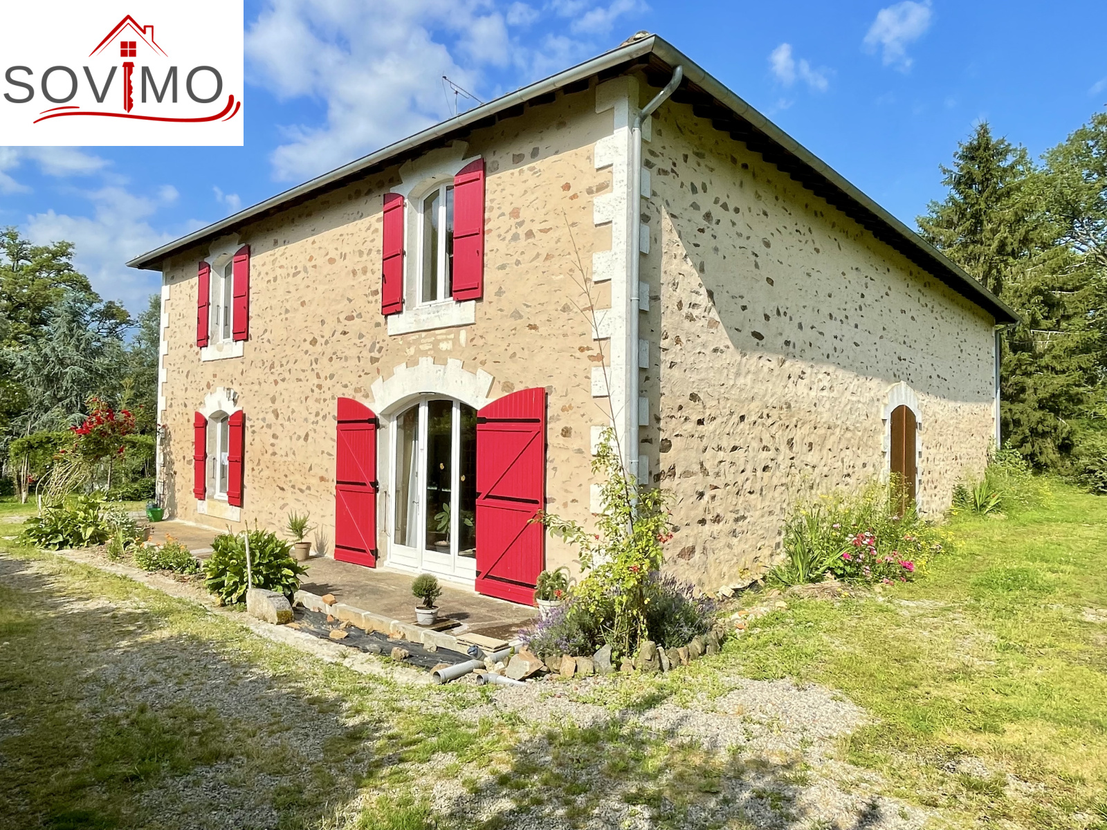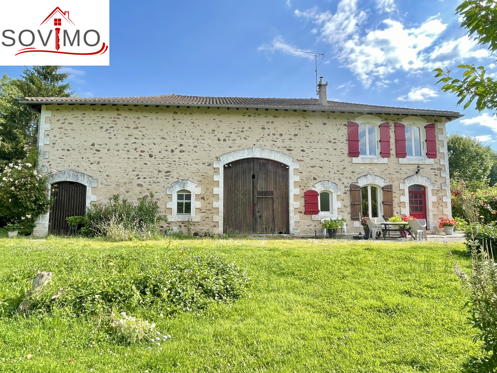 REF. 34630 : 194 400 euros H.A.I.,Saulgond16),dans un beau parc arboré, ancienne fermette restaurée en pierre, indépendante, à usage d'habitation, 159 m2 env. utilisables, composée au rez de chaussée : cuisine amé.équip./séjour (poêle à bois), salon, couloir, salle de bain, wc, buanderie de 8 m2, à l'étage : palier/mezzanine, 3 chambres, wc, grenier. Assainissement collectif, chauf. électrique + poele à bois, grange attenante avec étable 150 m2, terrain attenant avec puits, le tout sur 7113 m2.
