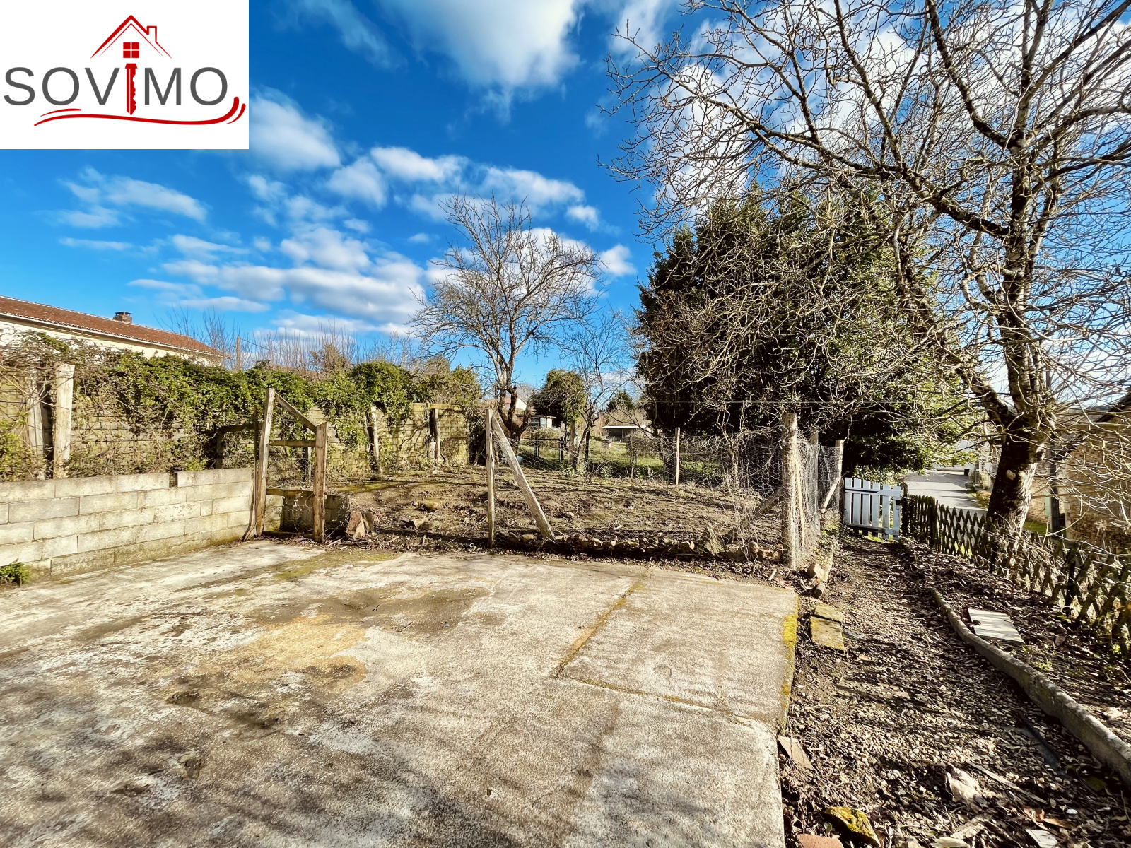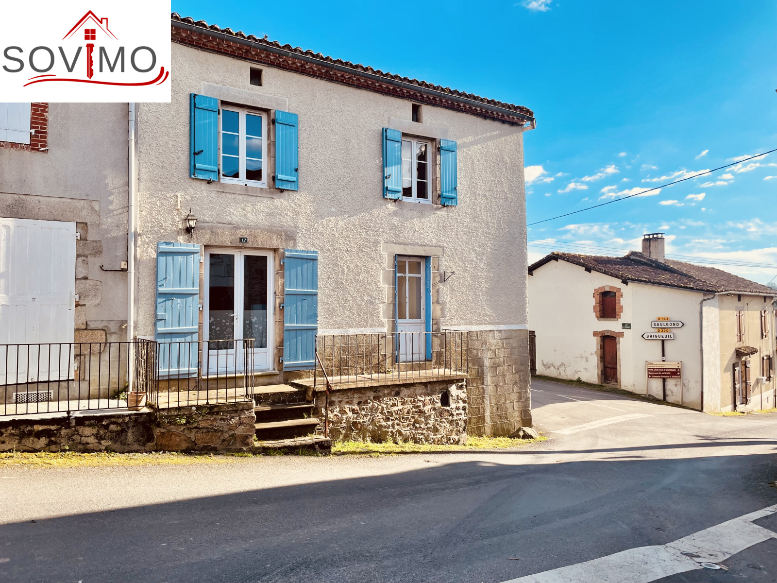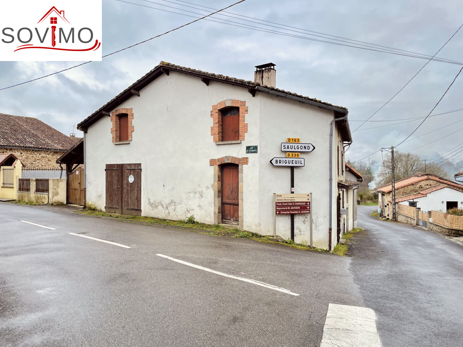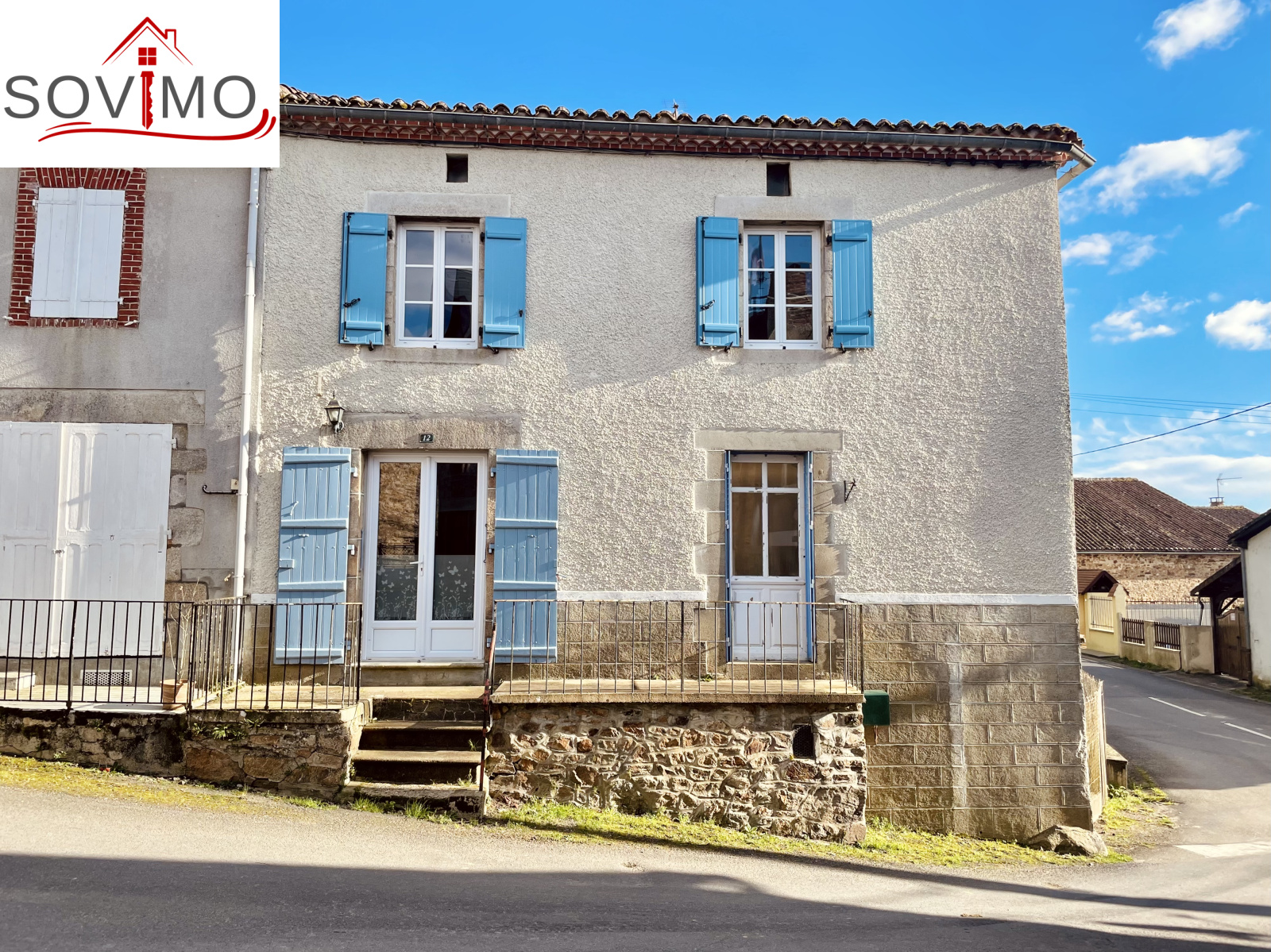 REF. 34708 : 68 200 euros HAI, Saint Christophe (16), au centre bourg avec commerces, maison de village mitoyenne, à usage d'habitation, 90 m2 env. utilisables, composée au rez de chaussée : cave de 20 m2, ancienne salle d'eau de 4 m2, au rez de chaussée surélevé : cuisine aménagée, salon/salle à manger (poêle à bois), dégagement, salle d'eau/wc, à l'étage : palier, 3 chambres, salle d'eau/wc avec accès comble. Chauf. électrique, assainissement collectif. Terrasse en bois avec appentis, cour/jardin avec petit abri sur 290 m2. En face ancienne maison à usage de garage/stockage de 45 m2 avec grenier au dessus. Le tout sur 335 m2.