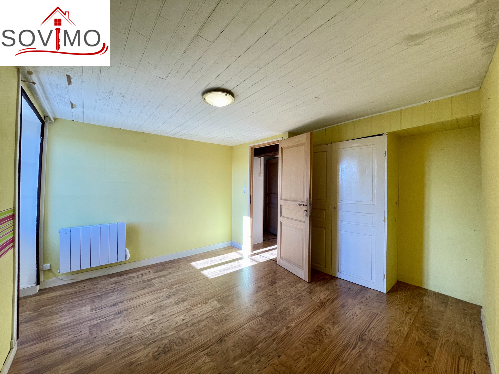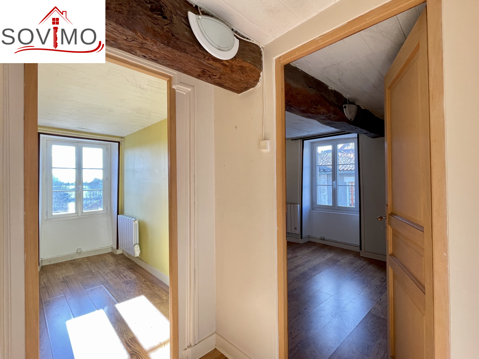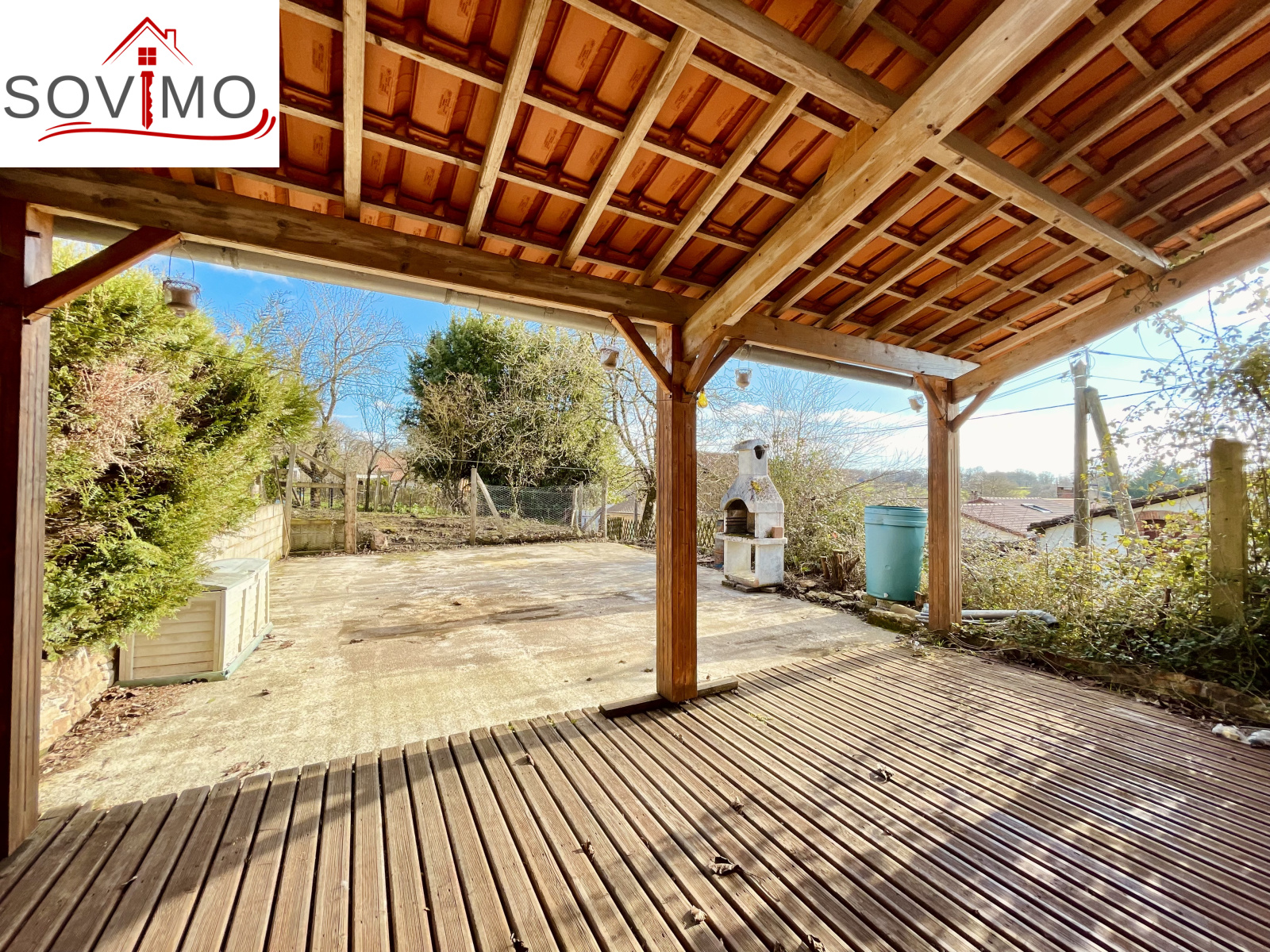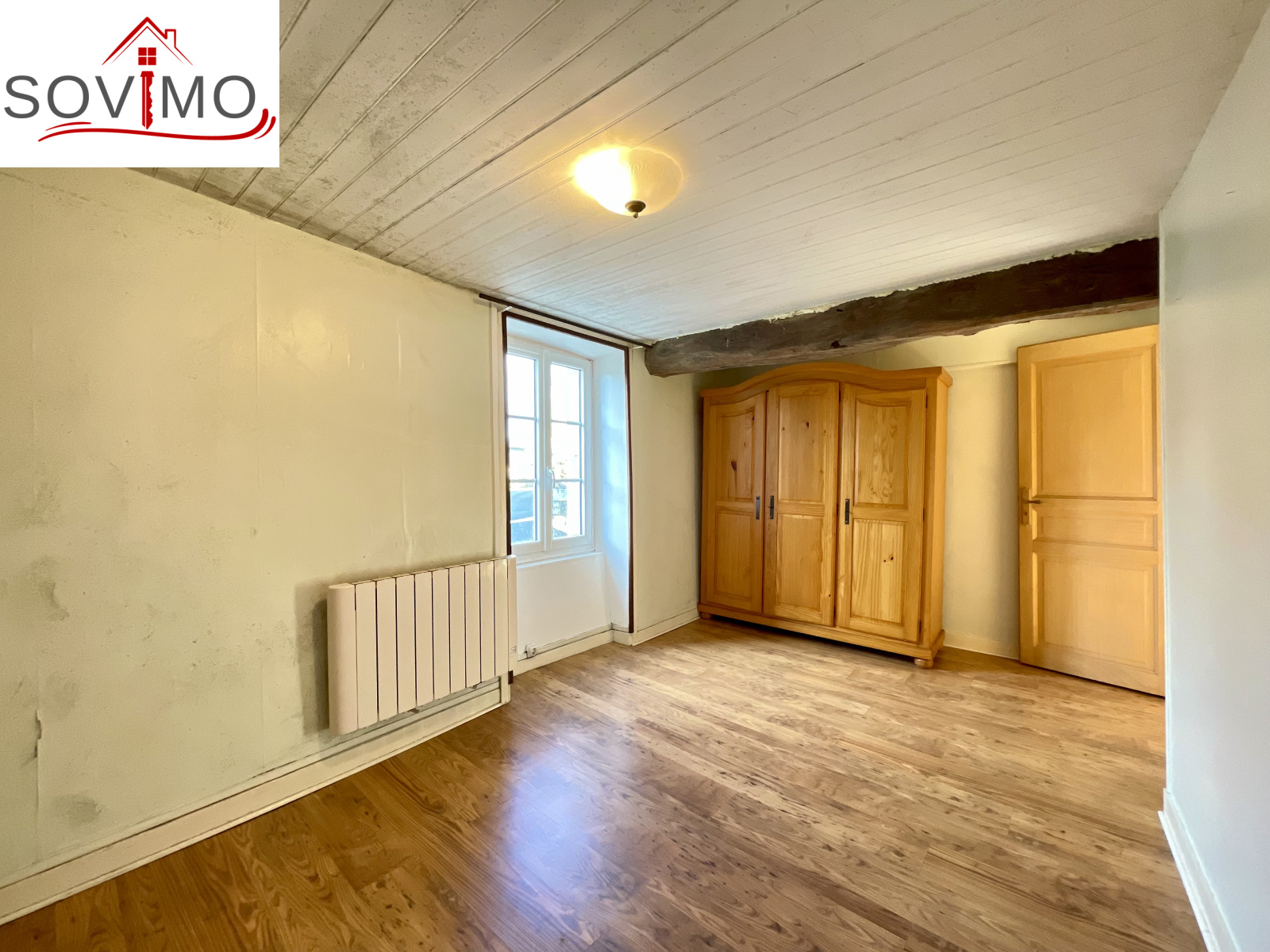 REF. 34708 : 68 200 euros HAI, Saint Christophe (16), au centre bourg avec commerces, maison de village mitoyenne, à usage d'habitation, 90 m2 env. utilisables, composée au rez de chaussée : cave de 20 m2, ancienne salle d'eau de 4 m2, au rez de chaussée surélevé : cuisine aménagée, salon/salle à manger (poêle à bois), dégagement, salle d'eau/wc, à l'étage : palier, 3 chambres, salle d'eau/wc avec accès comble. Chauf. électrique, assainissement collectif. Terrasse en bois avec appentis, cour/jardin avec petit abri sur 290 m2. En face ancienne maison à usage de garage/stockage de 45 m2 avec grenier au dessus. Le tout sur 335 m2.